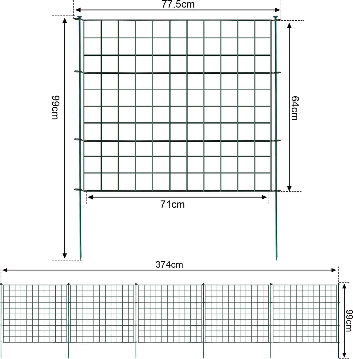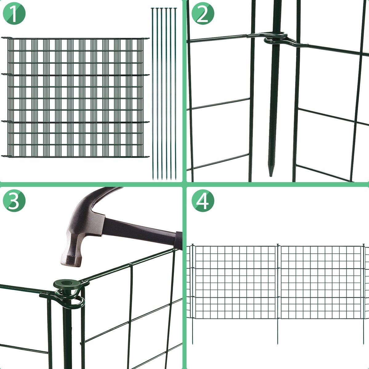 Schapenhek Vijverhekwerk Metalen Hek NIEUW 11tlg Hekwerk Metaal Tuinhek Tuinpoort GROEN Vakwerkhekwerk (Recht)