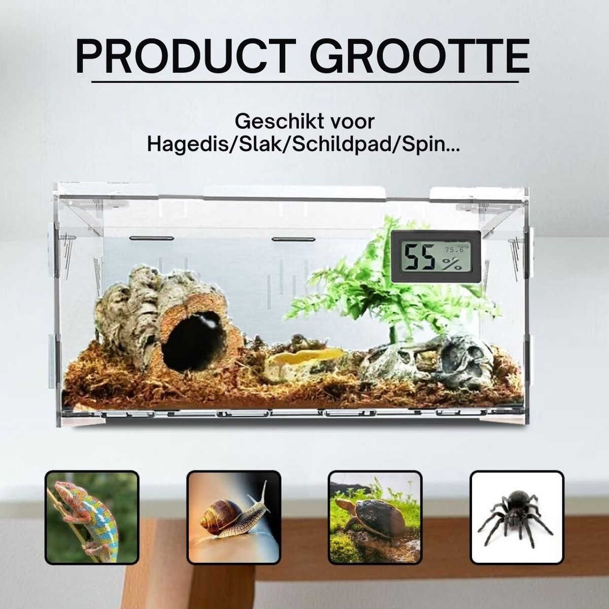 Schildpadden Verblijf - Schildpadden Aquarium Doorzichtig Acryl - Schildpadden Terrarium Met Temperatuur En Hygrometer - Schildpad - Reptielenverblijf – Schildpadbak - Turtle bank - 40 x 25 x 18 cm