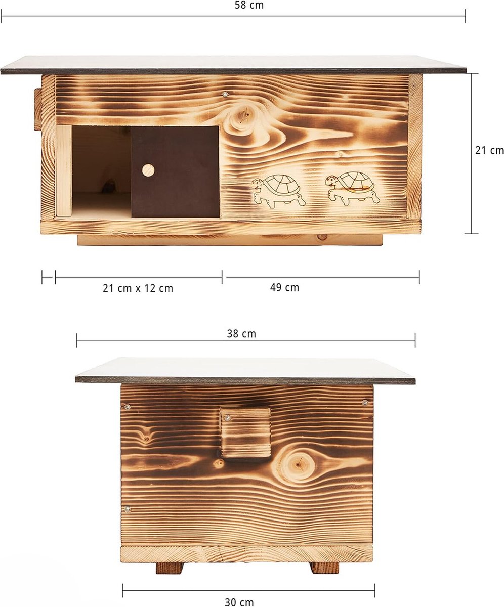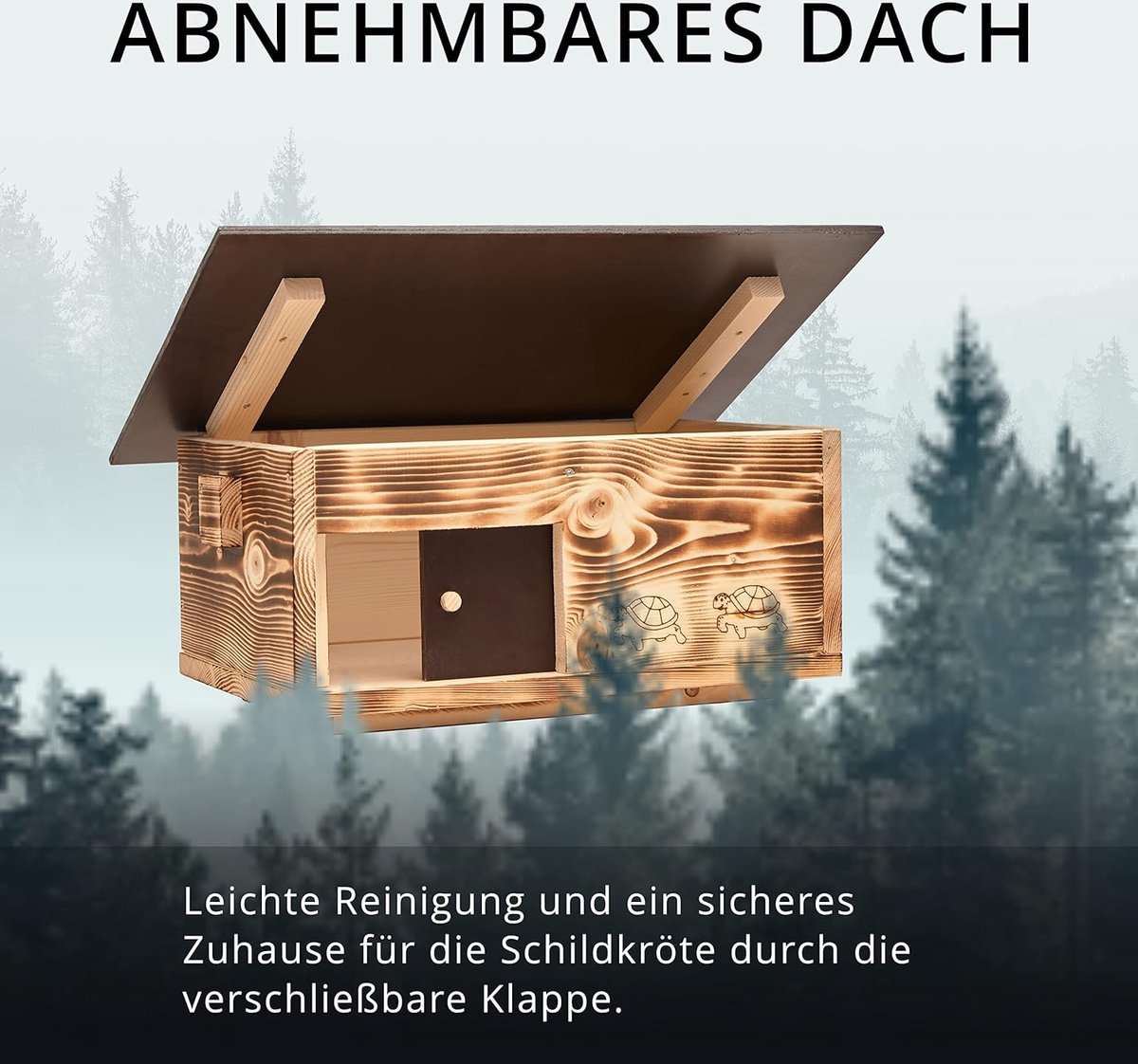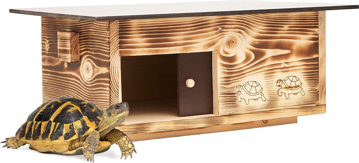 - Veiligheid en Comfort: Het huis biedt een veilige schuilplaats voor uw schildpad met voldoende ruimte om te bewegen en te rusten.