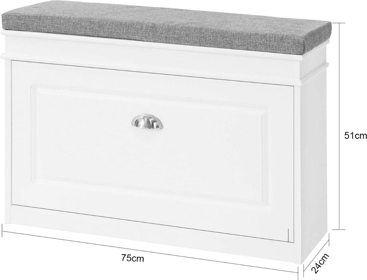 Schoenenbank met Zitkussen - Schoenenkast - Praktisch Opbergvak - 2 Niveaus - Gangmeubels - Wit - Prachtig Design - Stenberi