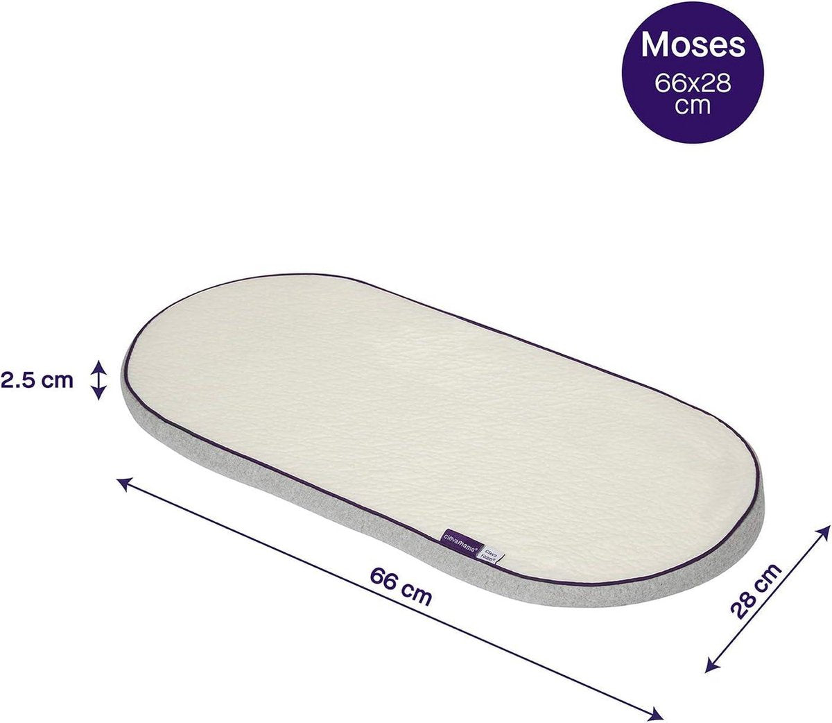 Schuimmatras voor mand en kinderwagen 66x28 cm - wit 3111 - Comfortabel ClevaFoam - ademend - ondersteunend