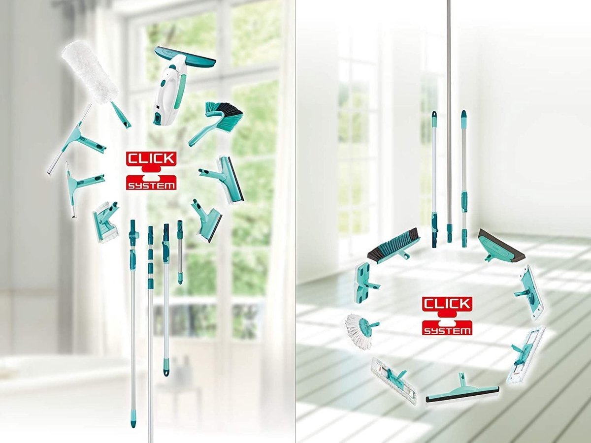 Click-systeem: Met het gepatenteerde Leifheit Click-systeem kunnen verschillende stelen en reinigingsapparaten eenvoudig worden gecombineerd met de vloerreiniger, voor ultieme veelzijdigheid.