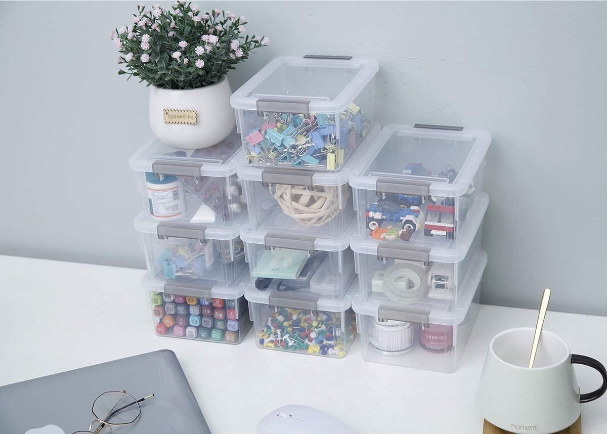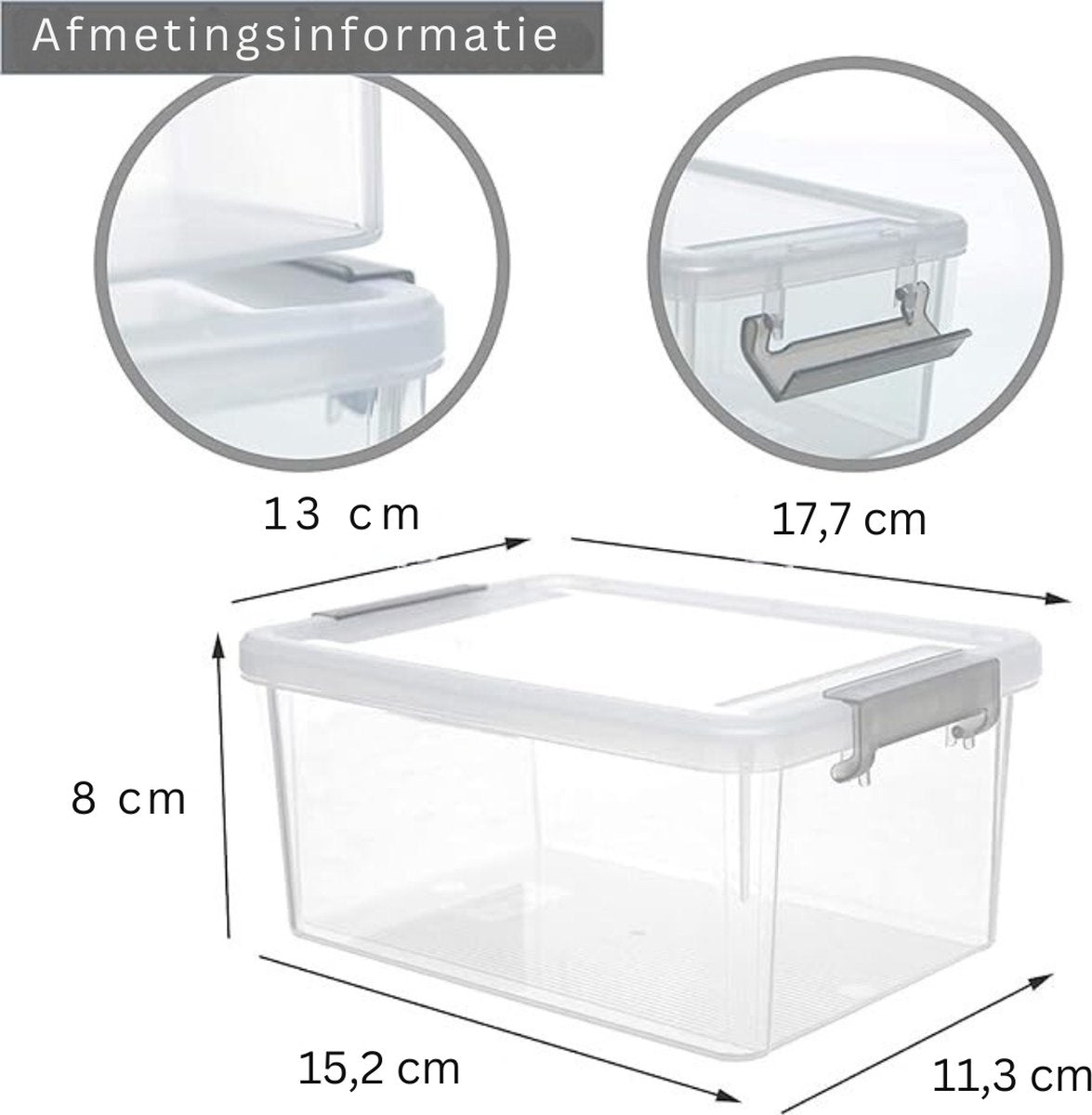 Transparant Design: Met een inhoud van 1,25 liter per doos en een transparant ontwerp, is de inhoud in één oogopslag zichtbaar. Ideaal voor het opbergen van cosmetica, pennen, kleurpotloden, naai-accessoires of kralen.