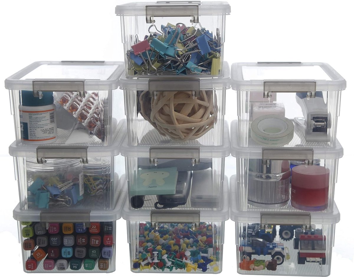 Set van 10 opbergdozen van 1,25 liter - Met deksel - Klein - Stapelbaar - Transparante handgreep - Clips - Kleine onderdelen - Kist - Elastisch - Robuuste plastic dozen voor Lego en knutselspullen