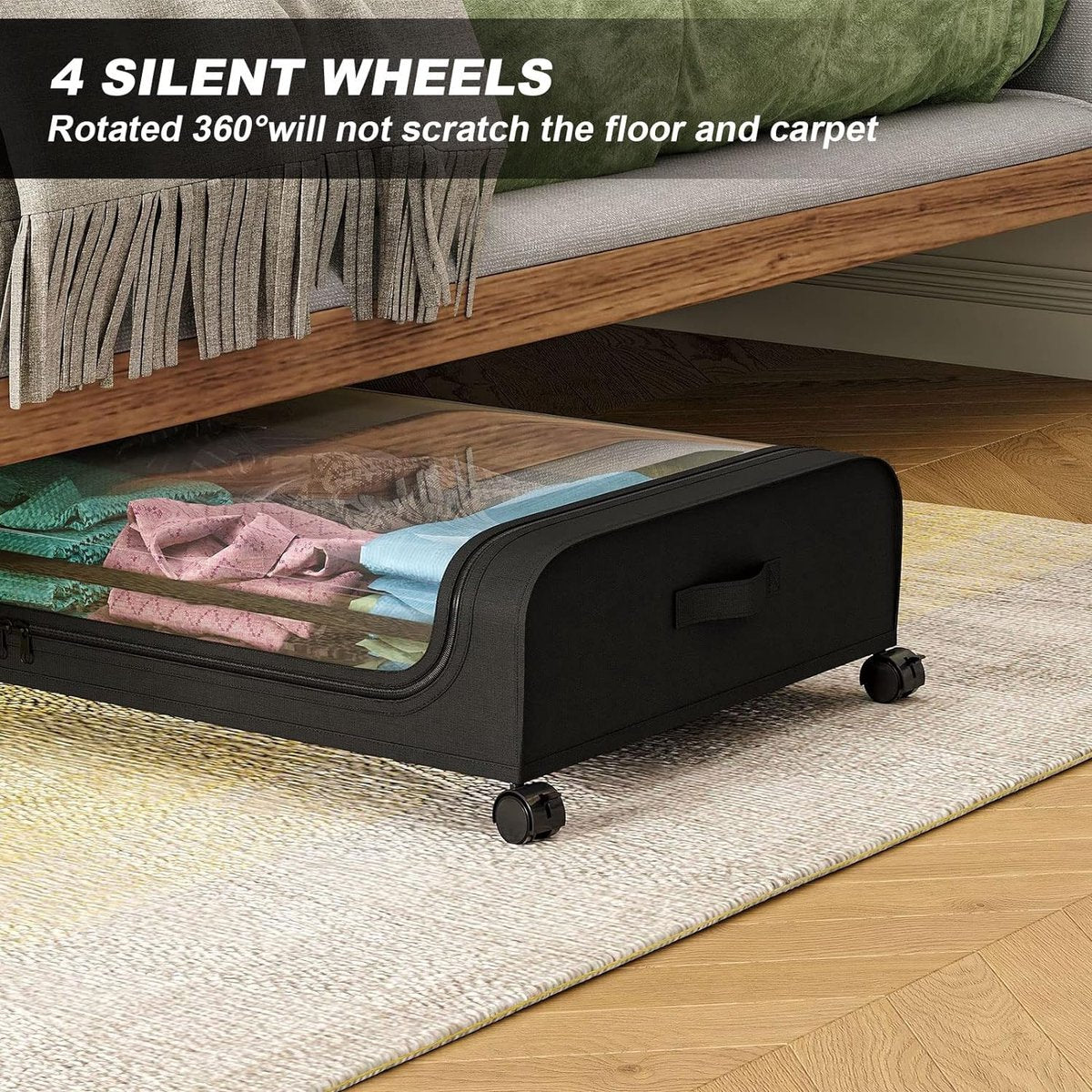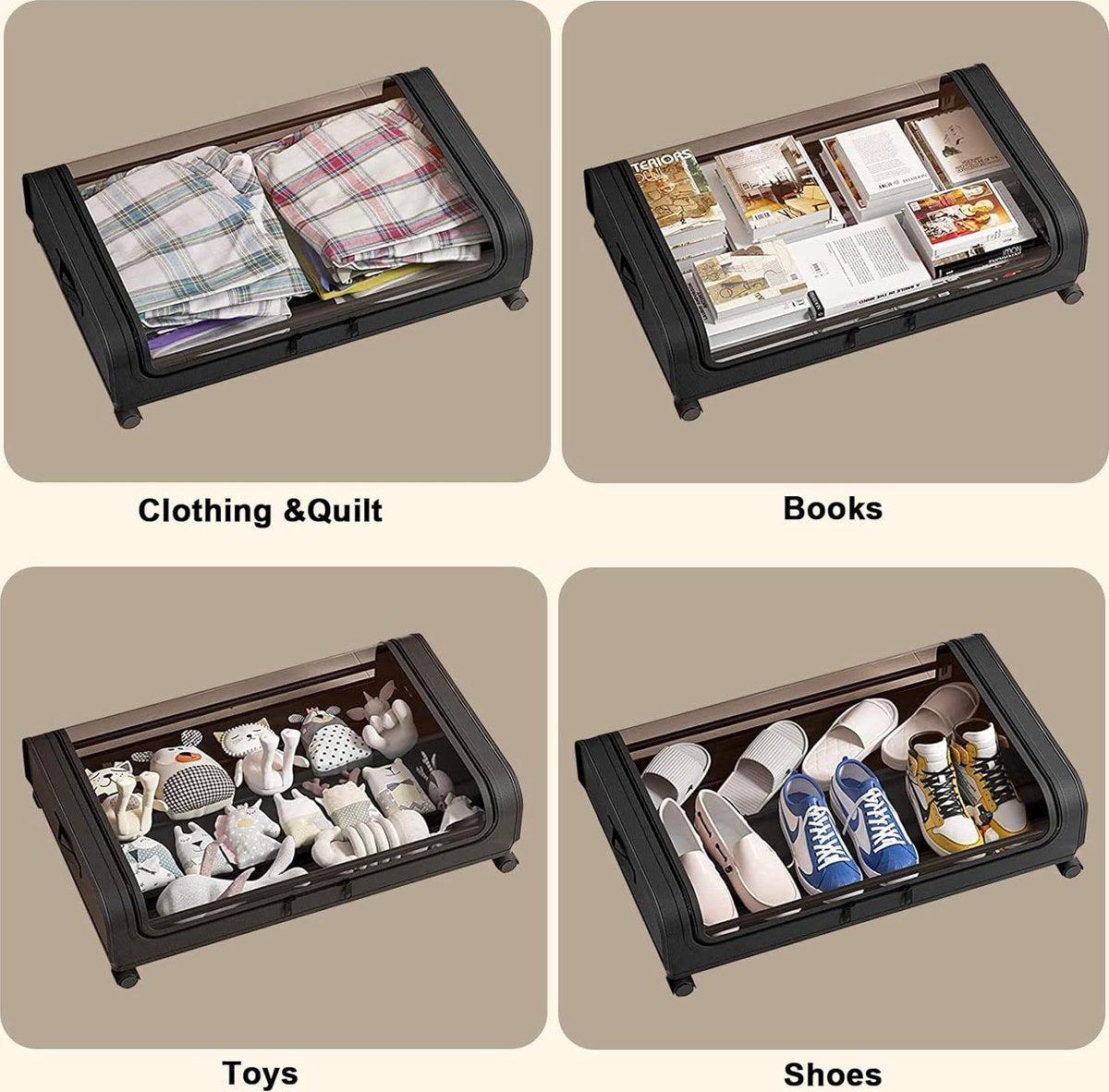 • Mobiele opbergoplossing: de opbergdoos voor onderbed is uitgerust met 360 graden zwenkwielen, waarmee het rek eenvoudig en flexibel kan worden verplaatst. Het frame bestaat uit koolstofstaal en is voorzien van een nanocoating om roest of aanslag te voorkomen, en heeft een draagvermogen van maximaal 20 kg.