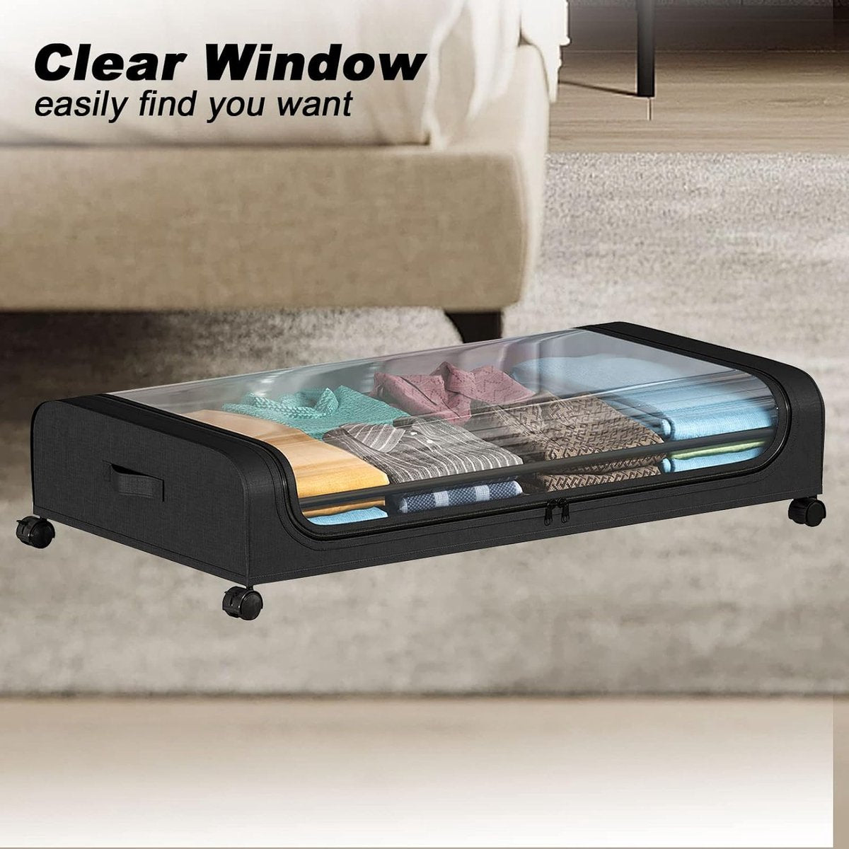 SHOP YOLO-opbergbox onder bed-met Wielen DekselRolling Metalen Frame Onderbed Containers Clear Venster- Opbergtas Doos Organisatie Thuis