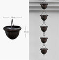 • Milieuvriendelijk alternatief: Regenkettingen zoals deze bieden een duurzaam en milieuvriendelijk alternatief voor traditionele regenpijpen, waarbij het water zachtjes naar de grond stroomt en opgevangen kan worden voor tuinirrigatie of andere doeleinden.