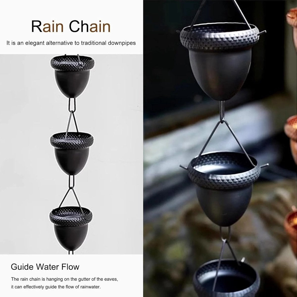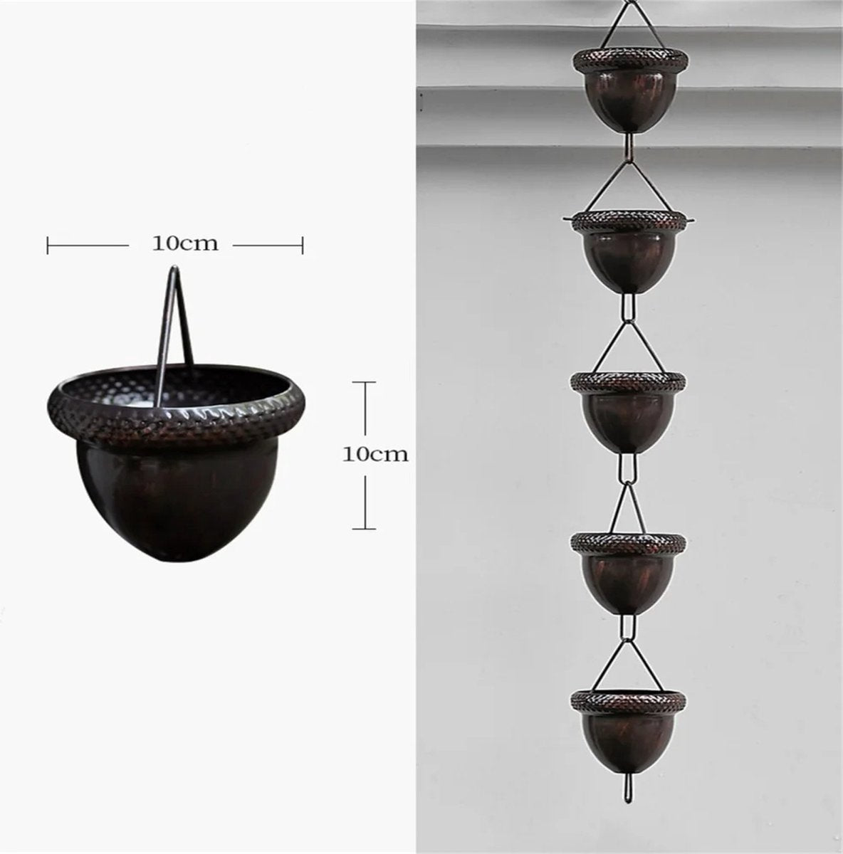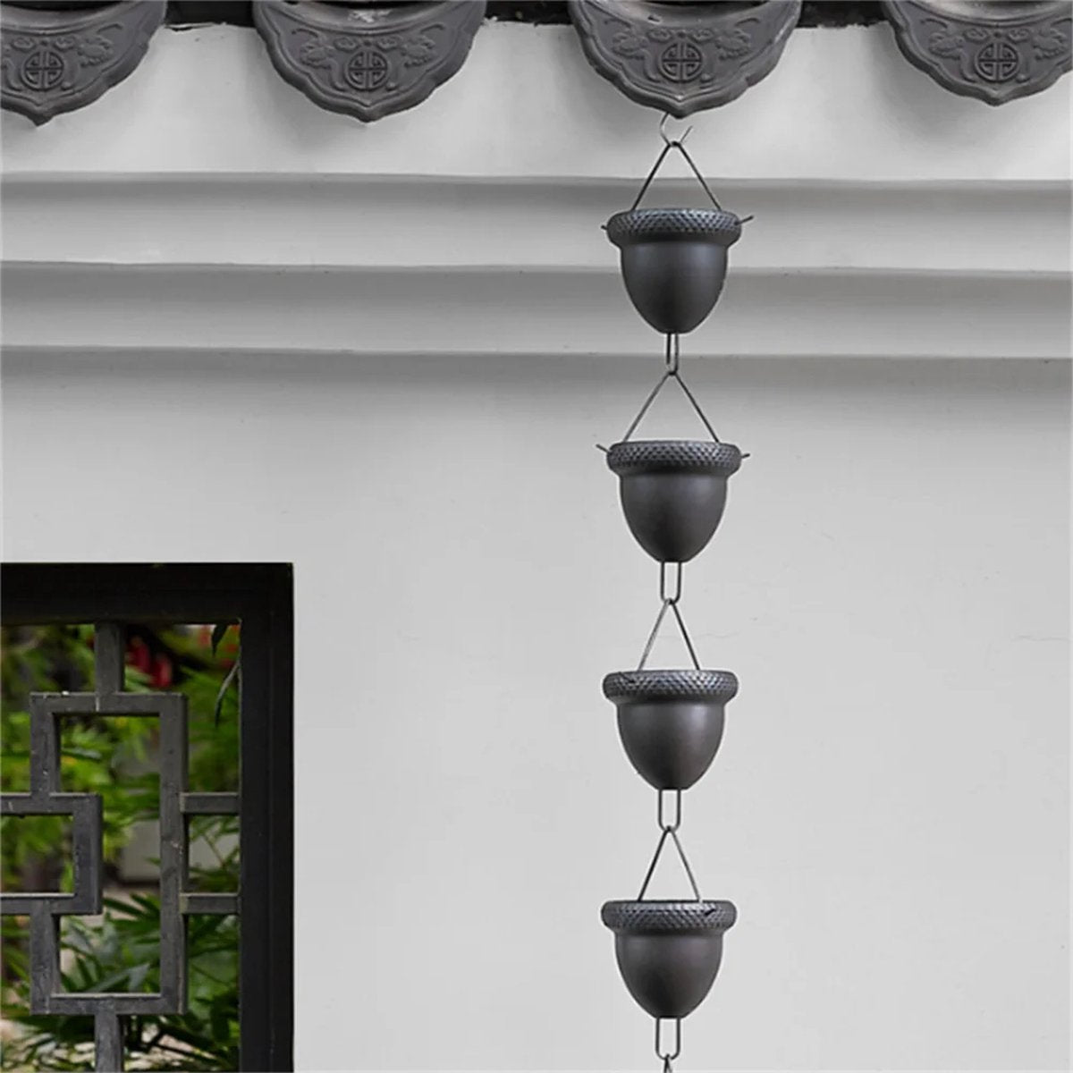 • Breed toepasbaar: Deze eikelvormige regenketting is niet alleen ideaal voor het dak van uw huis, maar ook voor luifels, schuren, paviljoens en terrassen. Het is een veelzijdige oplossing die zowel de functionaliteit als de esthetiek van uw buitenruimte verbetert.