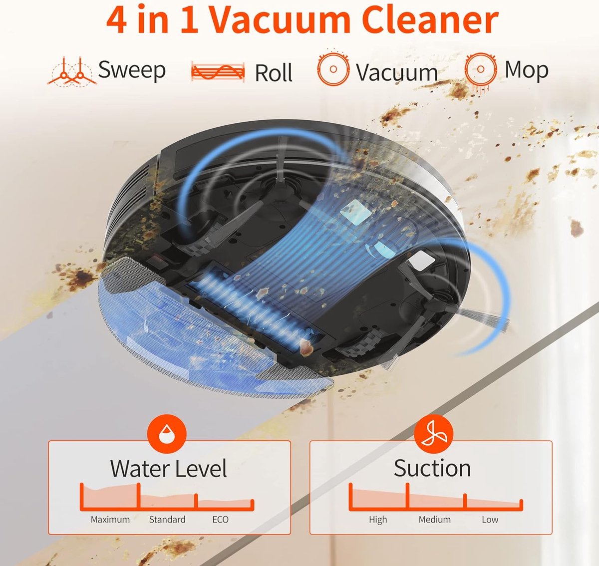 Waarom investeren in meerdere apparaten als één alles kan doen? Of het nu gaat om grote stukken vuil, koffiebonen of hardnekkige haren van je huisdier, met een indrukwekkende zuigkracht van 3000 Pa haalt deze robotstofzuiger alles moeiteloos weg. Bovendien verhoogt hij automatisch de zuigkracht zodra hij een tapijt detecteert, waardoor zelfs het diepste vuil wordt verwijderd. Voeg daarbij de dweilfunctie toe en je huis schittert als nooit tevoren.