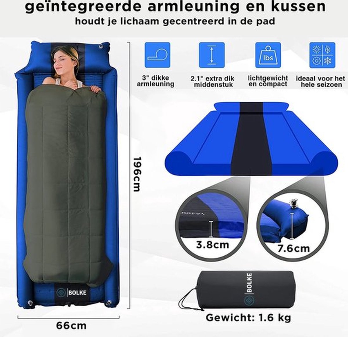 slaapmat - slaapmat zelfopblazend - slaapmatje - slaapmatje 1 persoons - slaapmatten - slaapmat 10 cm - slaapmatras zelfopblazend met armleuning
