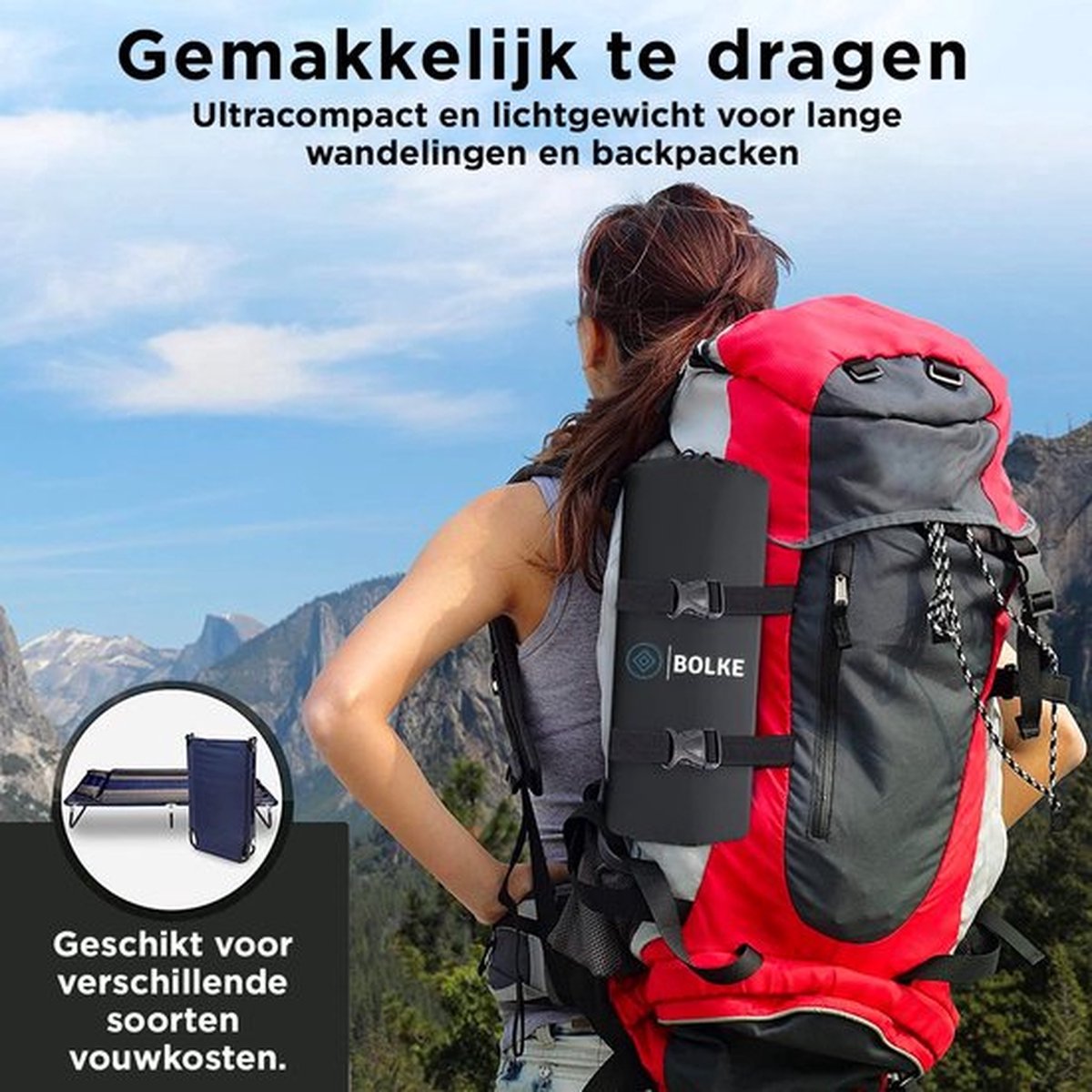 Compact en Draagbaar: Dankzij het lichtgewicht en compacte ontwerp neem je dit slaapmatje overal mee naartoe. Of je nu gaat kamperen, wandelen of gewoon een dagje naar het strand gaat, dit matje is gemakkelijk op te bergen in je rugzak of auto, zodat je altijd en overal kunt genieten van een goede nachtrust.