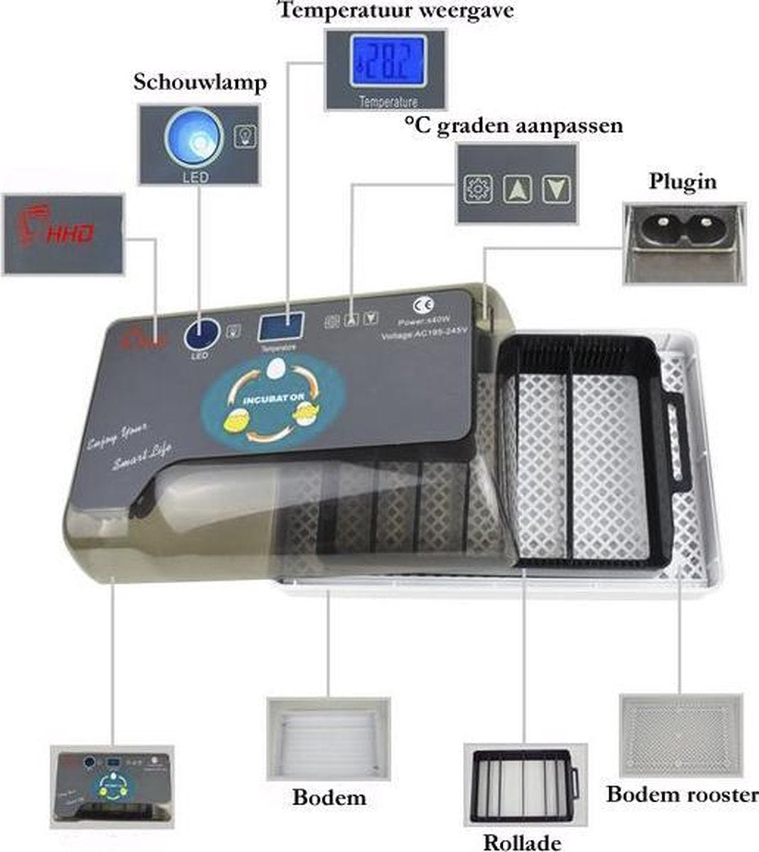 ● Perfect voor het uitbroeden van kippen, eenden, kwartels, vogels en ander gevogelte.