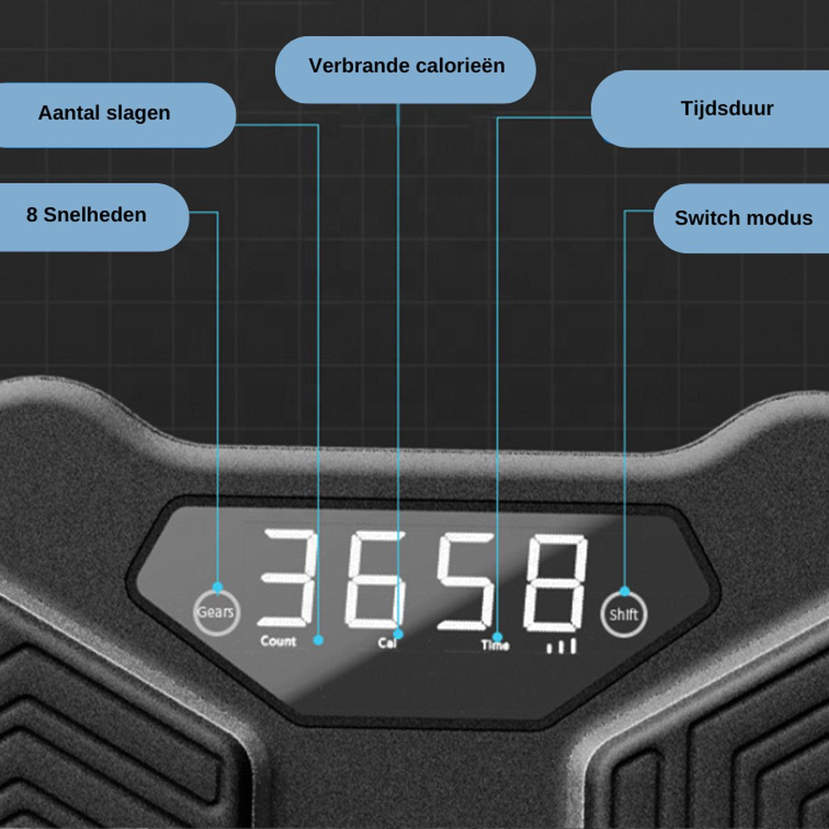 Zie het aantal verbruikte caloriën, het aantal rake slagen, of de tijdsduur van de work out -