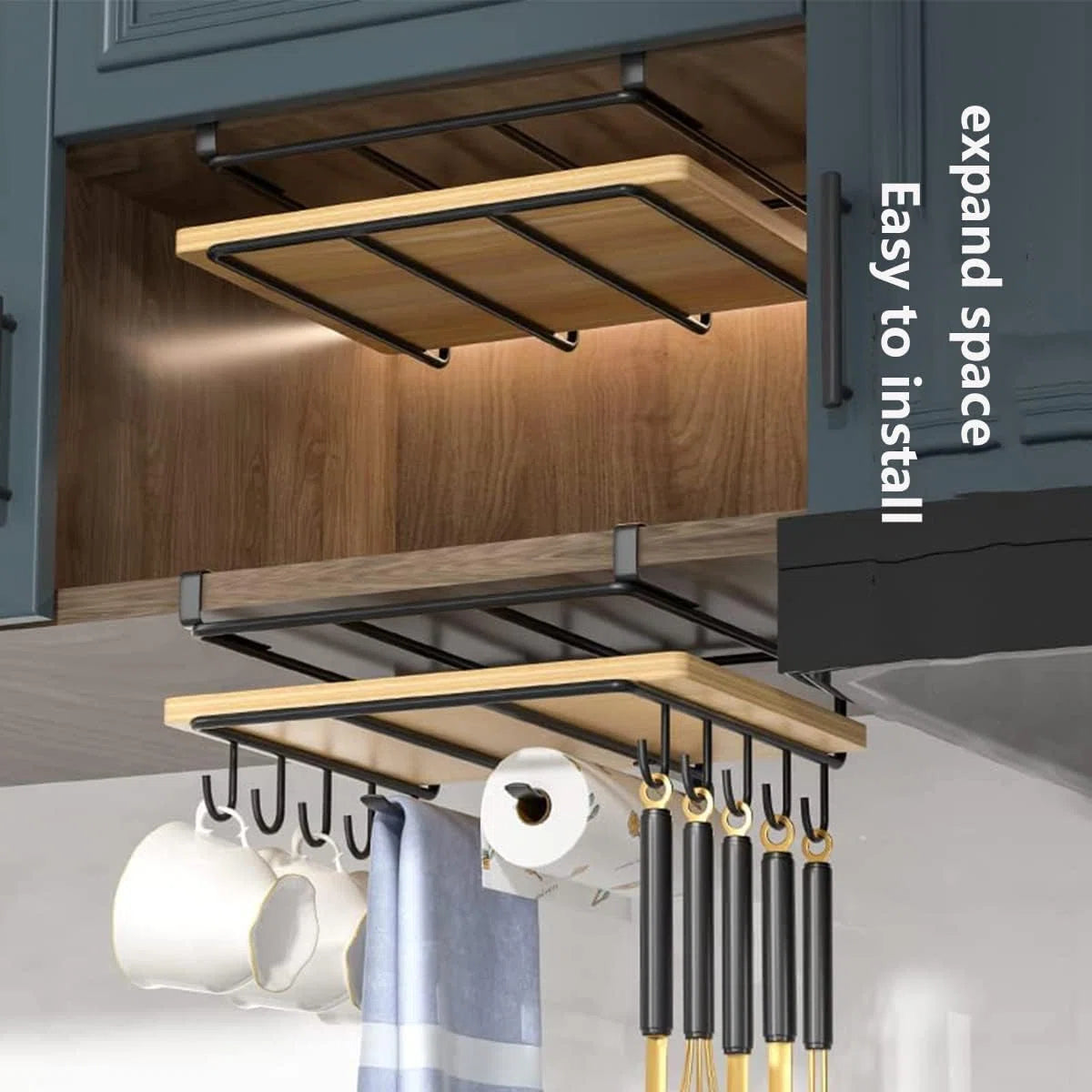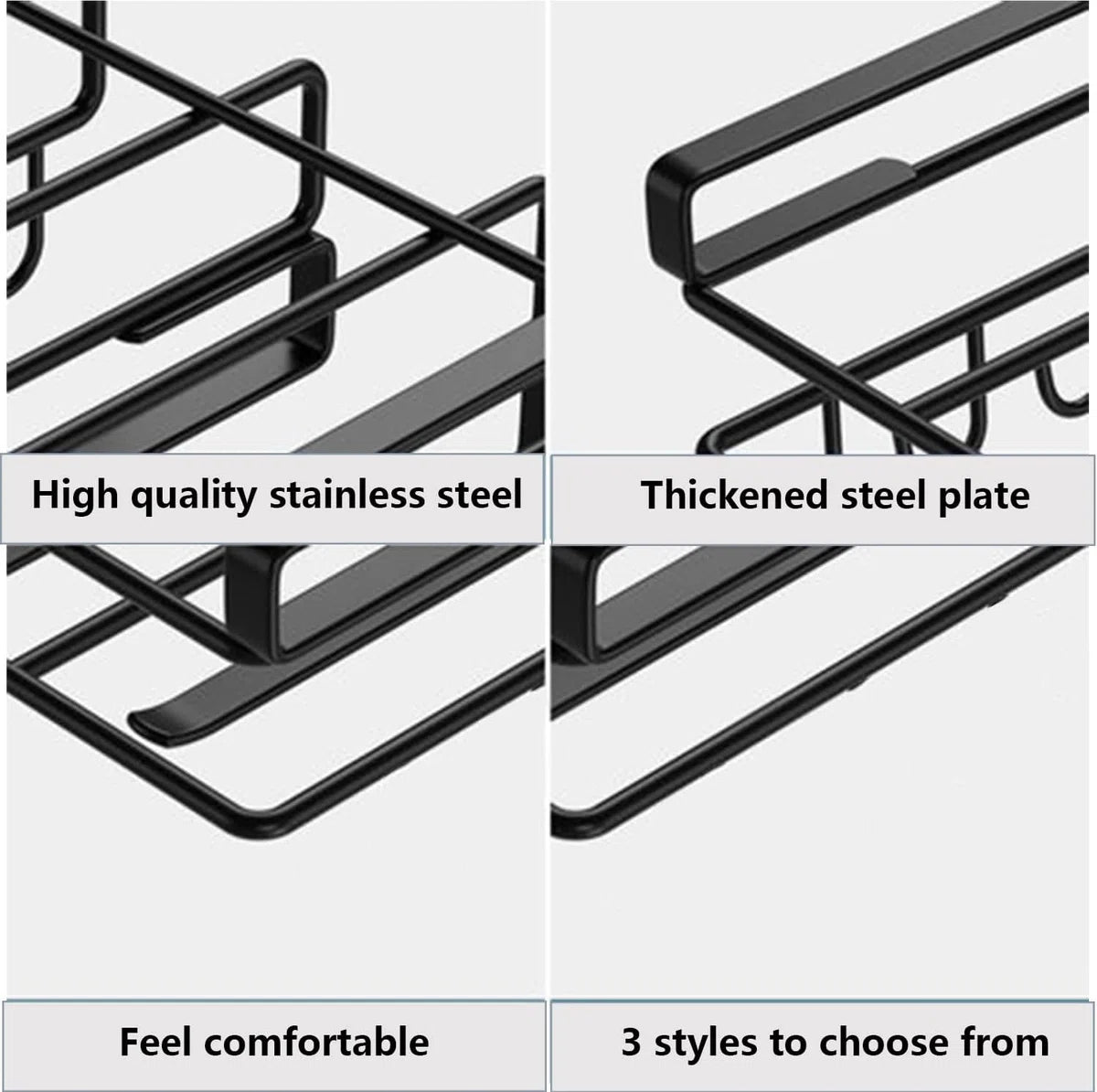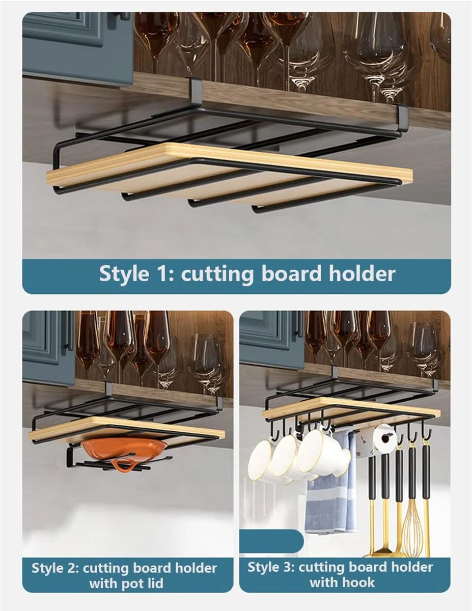 Snijplank plank houder roestvrij staal zonder boren keukenorganizer aan de kast keukengerei als plank insert telescopische plank voor opslag en veiligheid - dubbelwandige snijplankhouder zwart