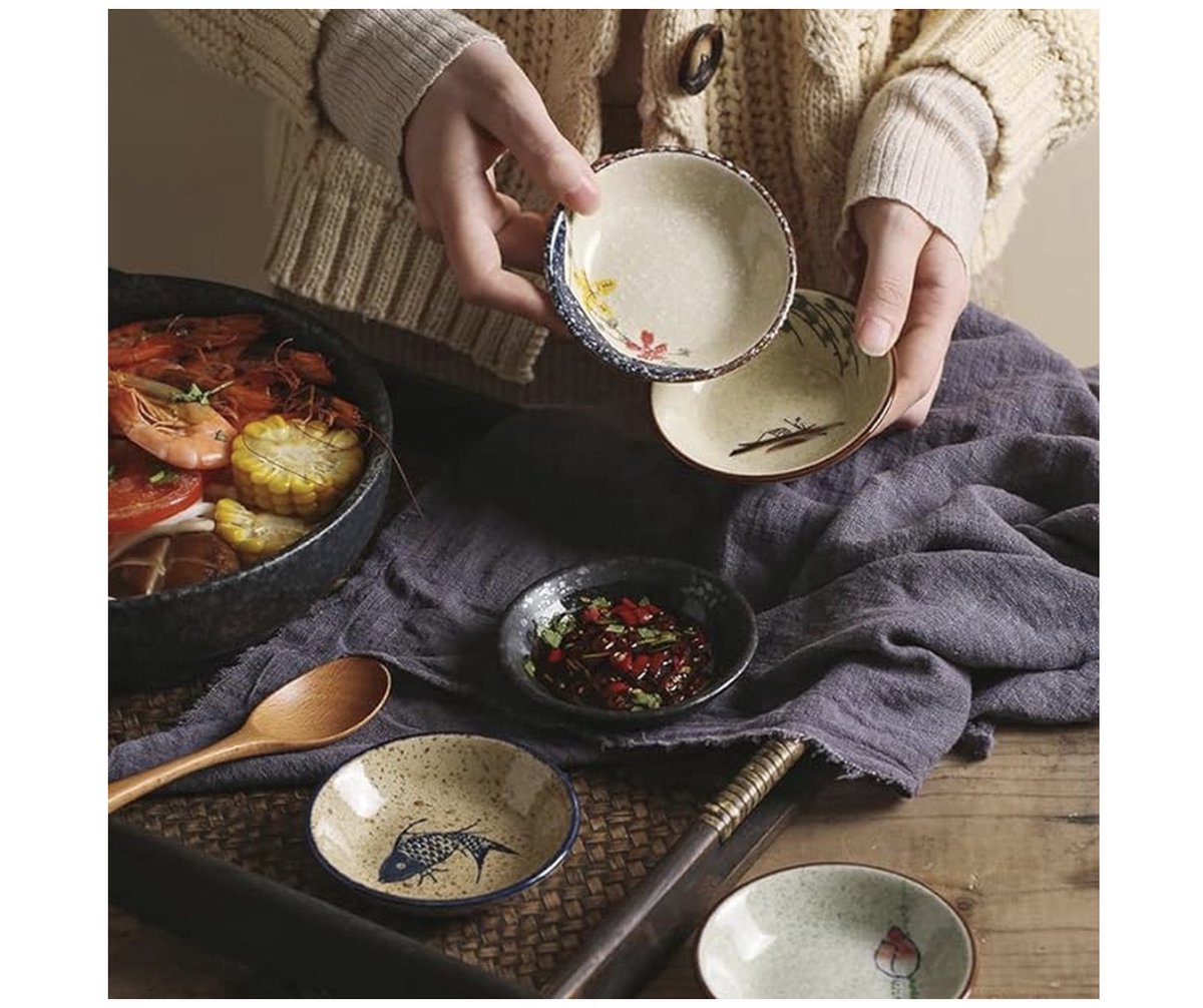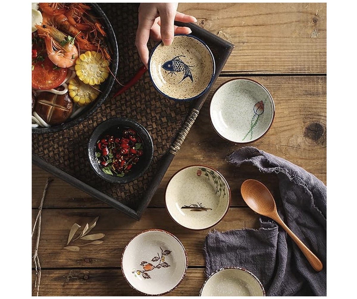 Sojasauskom, Dipkom Keramische, Tapas Schalen,6 stuks Mini-schaaltjes Keramische,Snackkommen set ,Sushi Soja Dompelen Kom,Dip Pinch Bowl Set