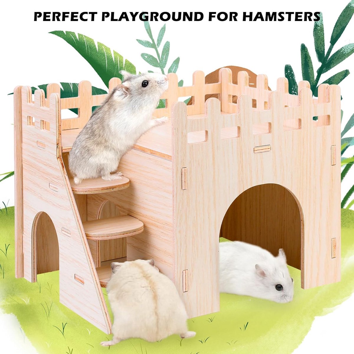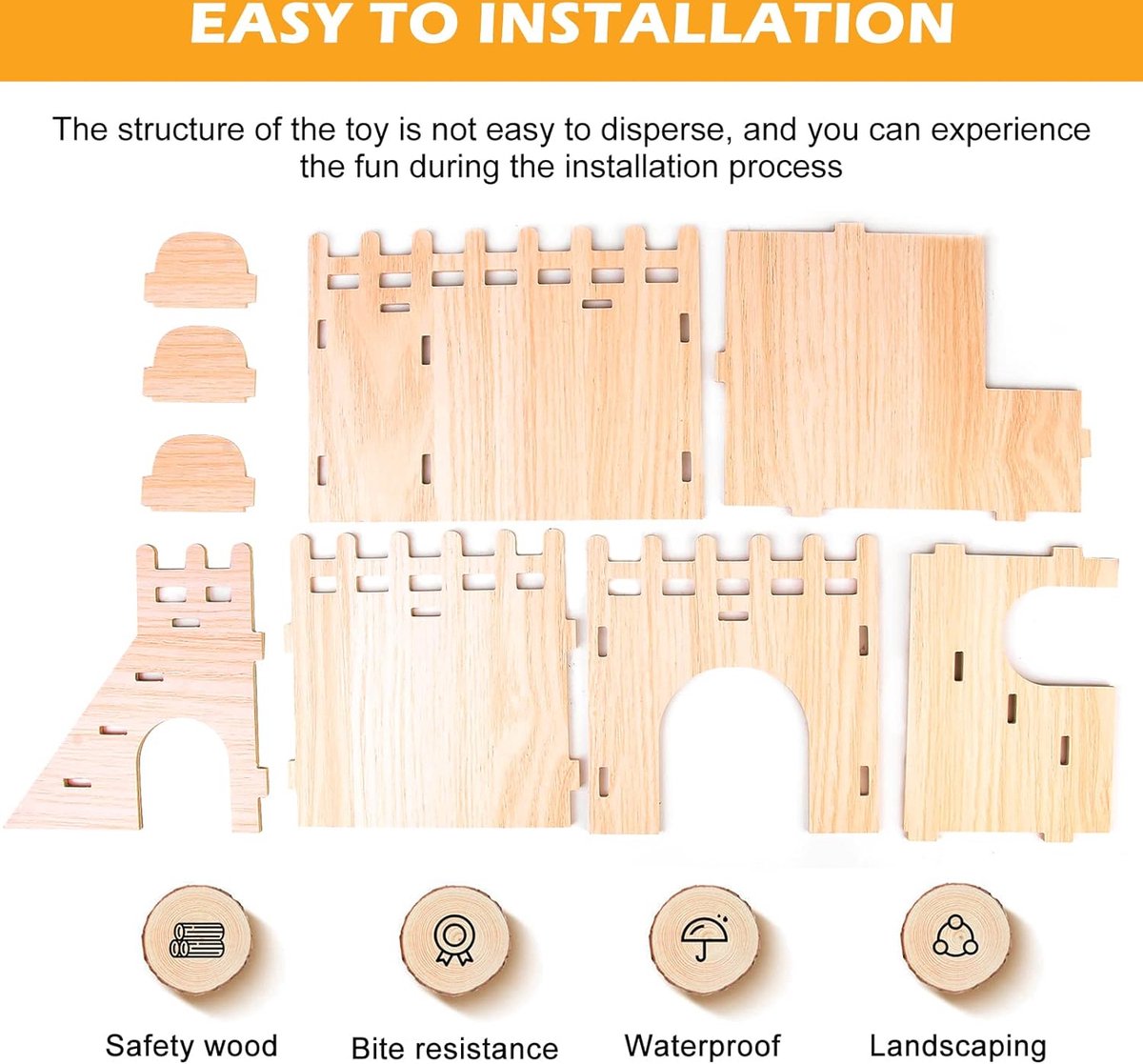 Doe-het-zelf hamsterspeelgoedset: deze doe-het-zelf hamsterspeelgoedset is rijk aan inhoud. Bevat dubbellaags huisje, wip, brug, schommel en trainingsspeelgoed, zodat je een speelplaats voor je huisdier kunt creëren om te trainen en te spelen. Natuurlijk materiaal: dit hamsterspeelgoed bestaat uit hoogwaardig houtmateriaal, en beide zijden zijn gecoat met een waterdichte laag. In vergelijking met ander speelgoed van hetzelfde type zijn onze producten robuuster en niet gemakkelijk te beschadigen. Eenvoudig te installeren: het installatieproces is zeer eenvoudig en de structuur van het hamsterspeelgoed is niet gemakkelijk te verspreiden, en je kunt het plezier beleven tijdens het installatieproces. Let op onze foto, als je vragen hebt, neem dan contact met ons op. Geschikt voor kleine dieren: deze hamsterspeelgoedset is geschikt voor hamsters, gerbils, eekhoorns, muizen, dwerghamsters en andere kleine knaagdieren. Let op de in de afbeelding getoonde afmetingen