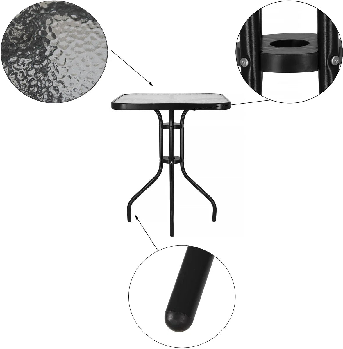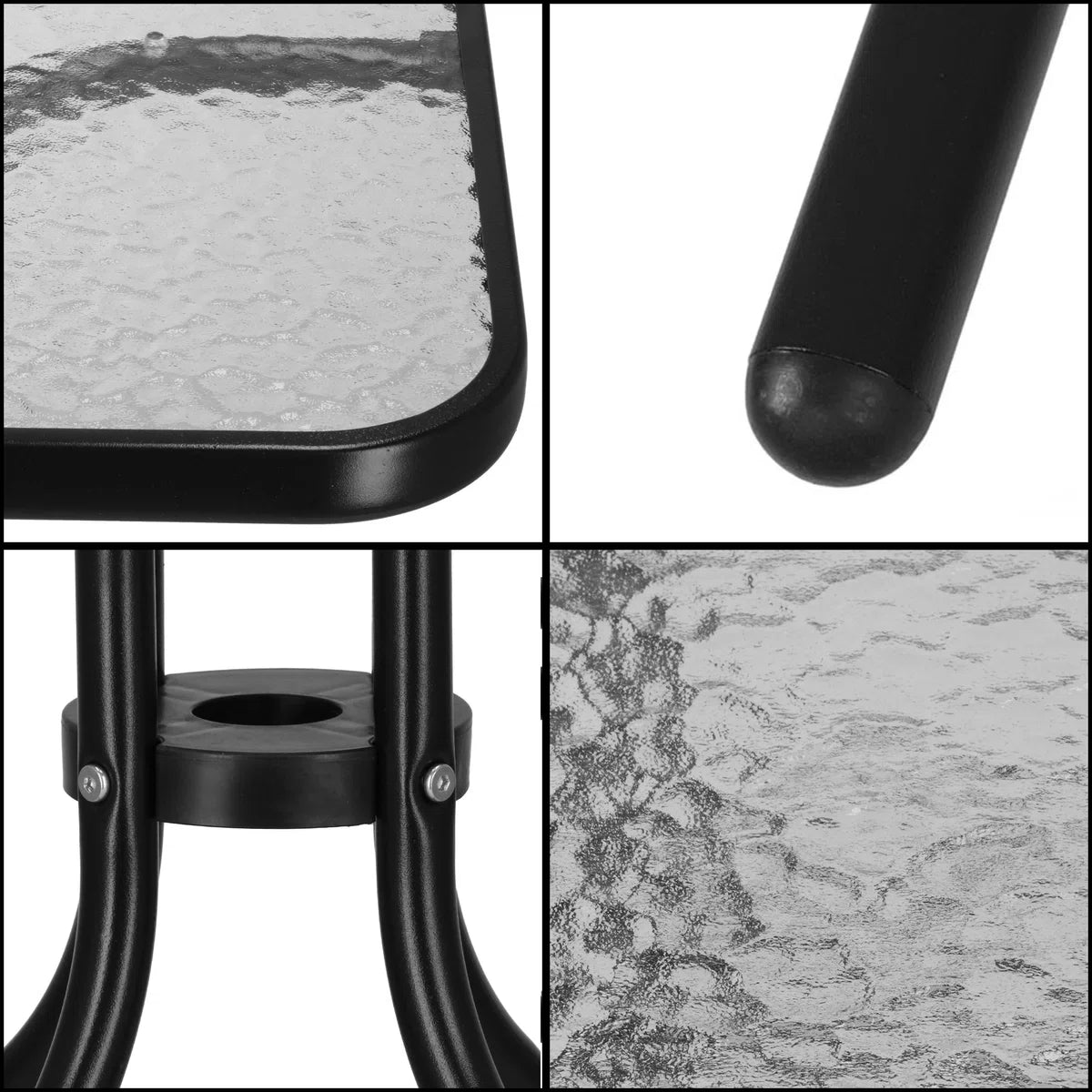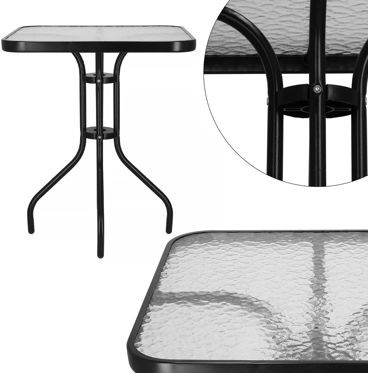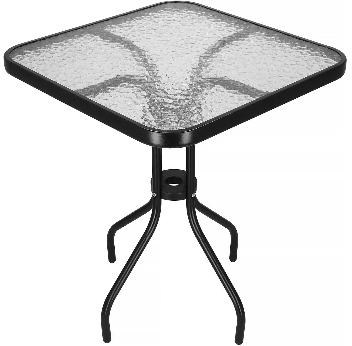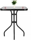 Springos Tuintafel | Buitentafel | Bijzettafel Buiten | Metaal | Gehard Glas | Vierkant | 60 x 60 x 70 cm | Zwart