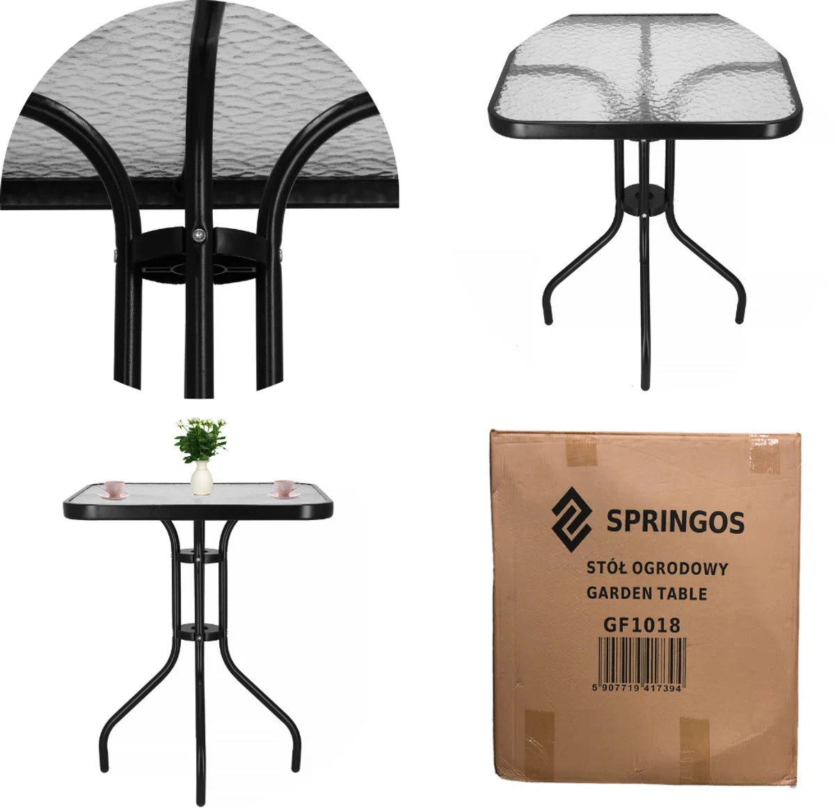 Deze stijlvolle tuintafel van Springos is ideaal voor in de tuin, het balkon of op het terras. De tuintafel is gemaakt van de beste materialen waardoor de tafel stevig is en veel seizoenen meegaat. Het blad van gehard glas maakt de tuintafel origineel, het gepoedercoate metaal geeft de tafel een stijlvolle look. Kortom, een echte eyecatcher in jouw tuintje!