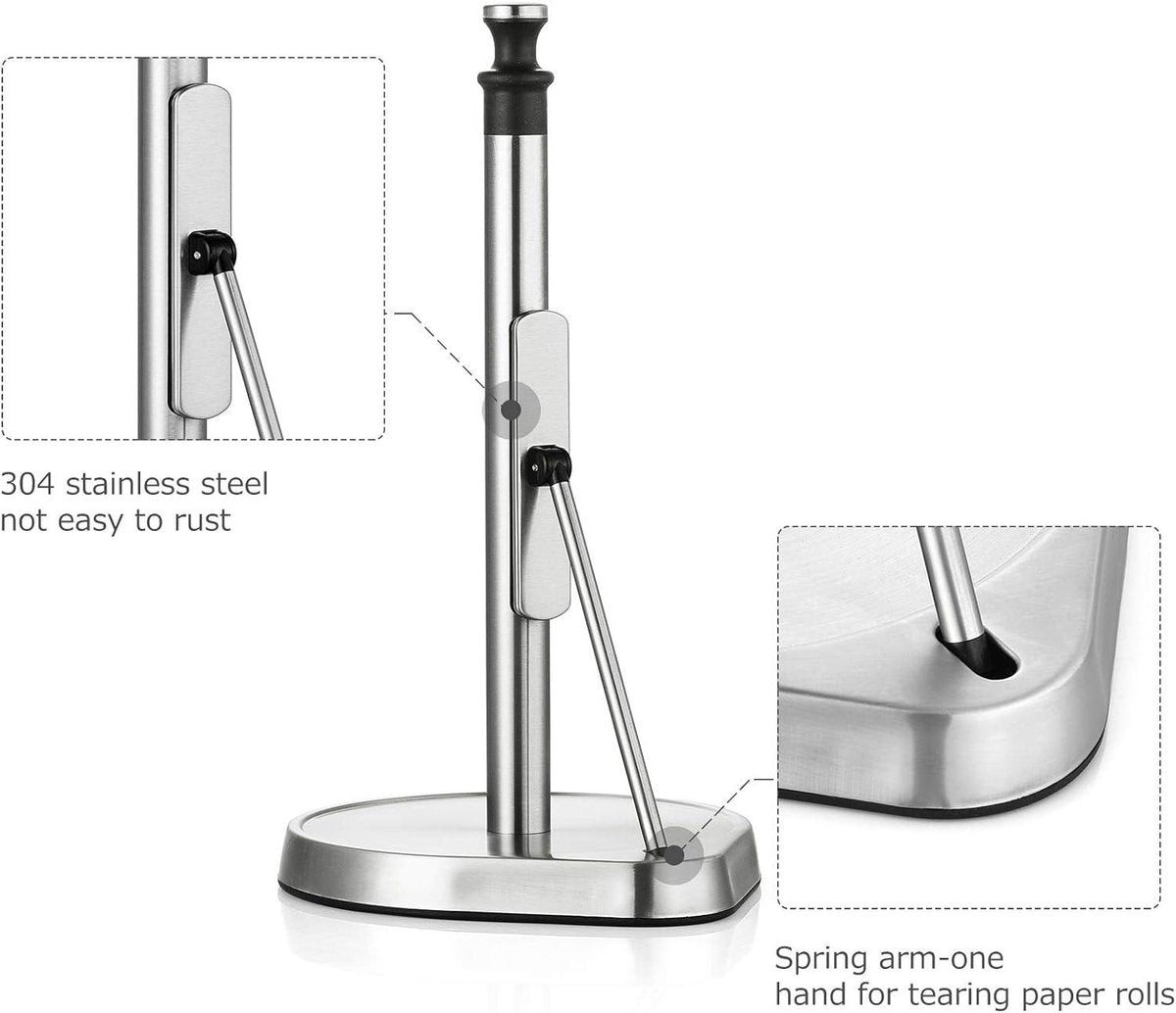 Deze keukenrolhouder van roestvrij staal is een essentiële toevoeging aan elke keuken. Het hoogwaardige materiaal zorgt voor duurzaamheid en past perfect bij elk decor. Met zijn handige veerarm design maakt het afscheuren van papieren handdoeken met één hand een fluitje van een cent. Daarnaast zorgt het zware antislip bodemdesign voor stabiliteit en beschermt het je werkgebied tegen krassen.