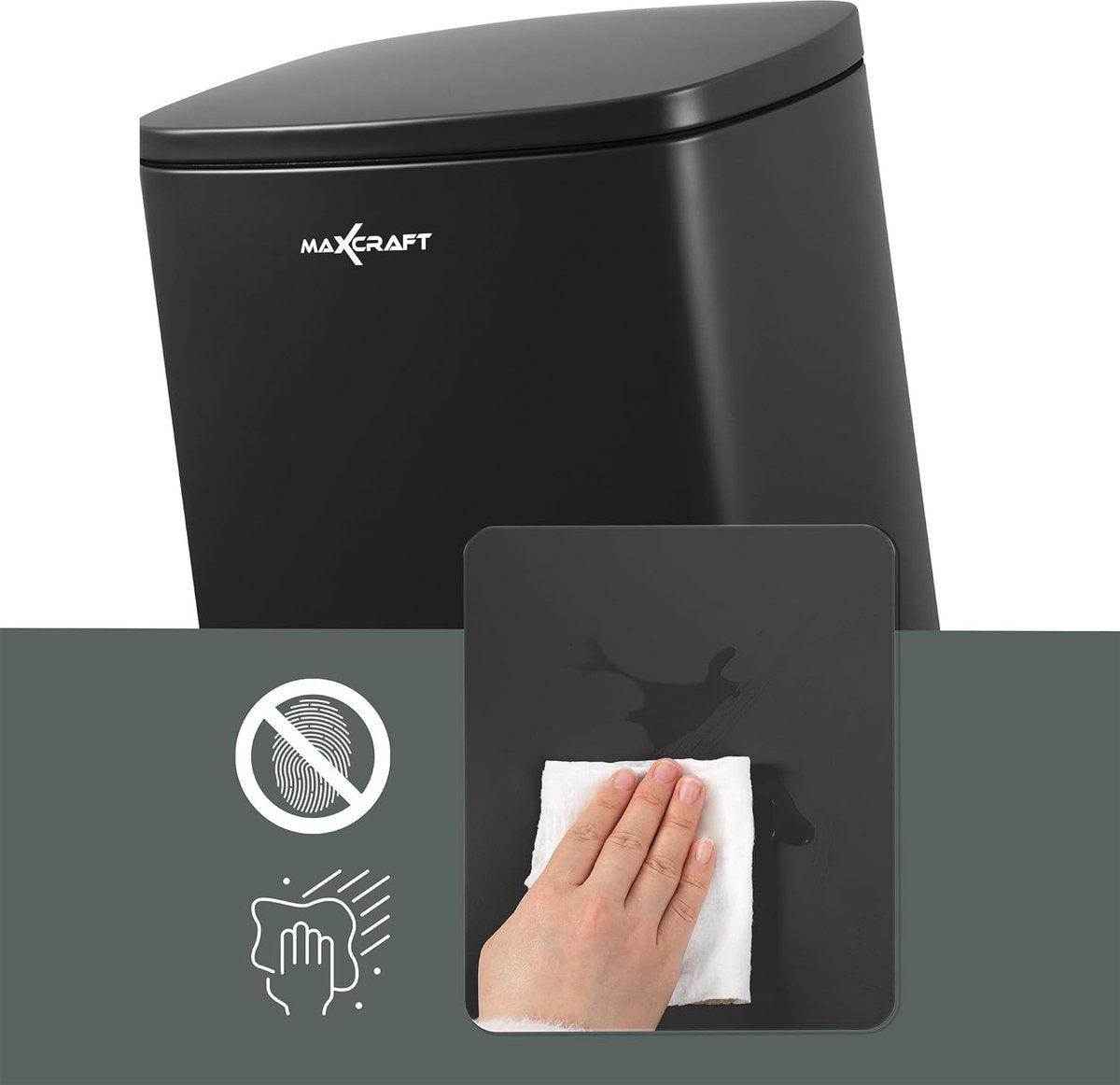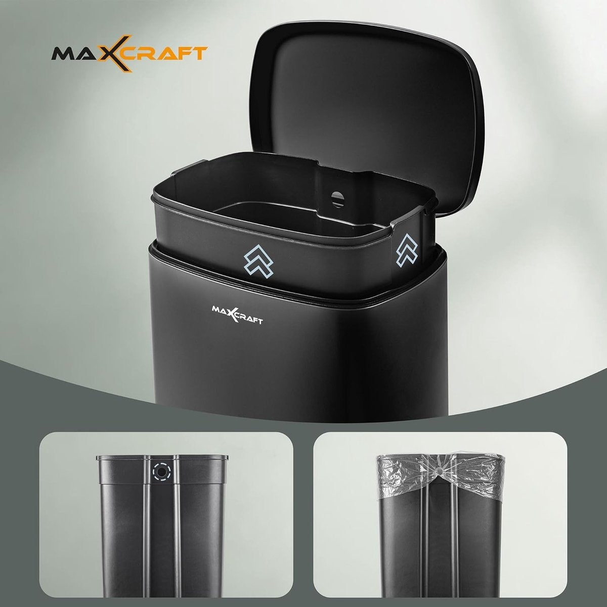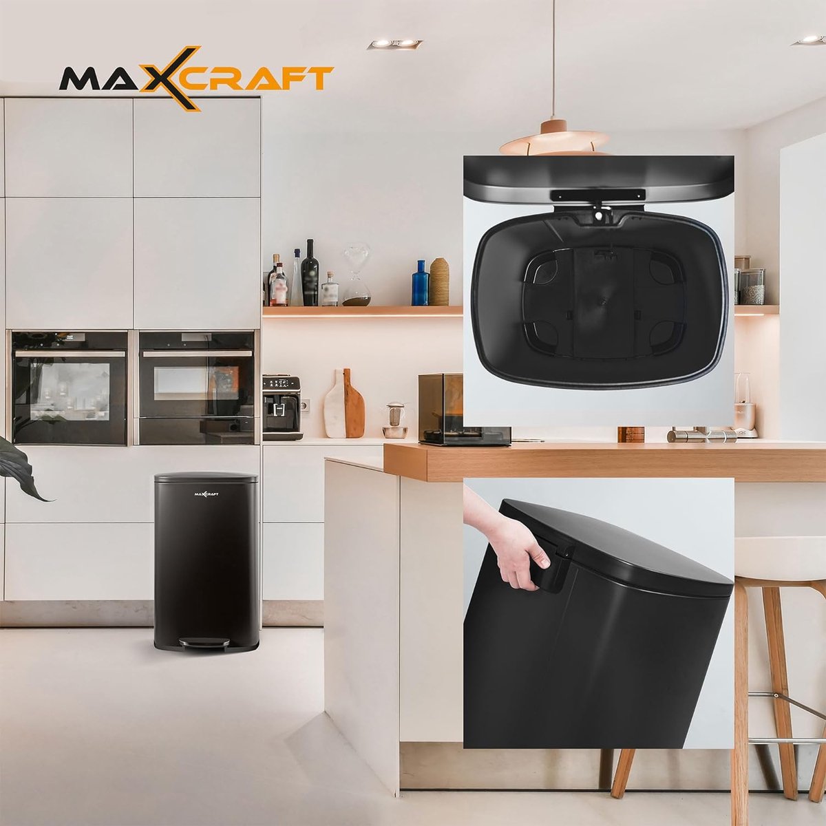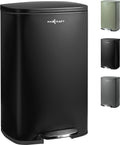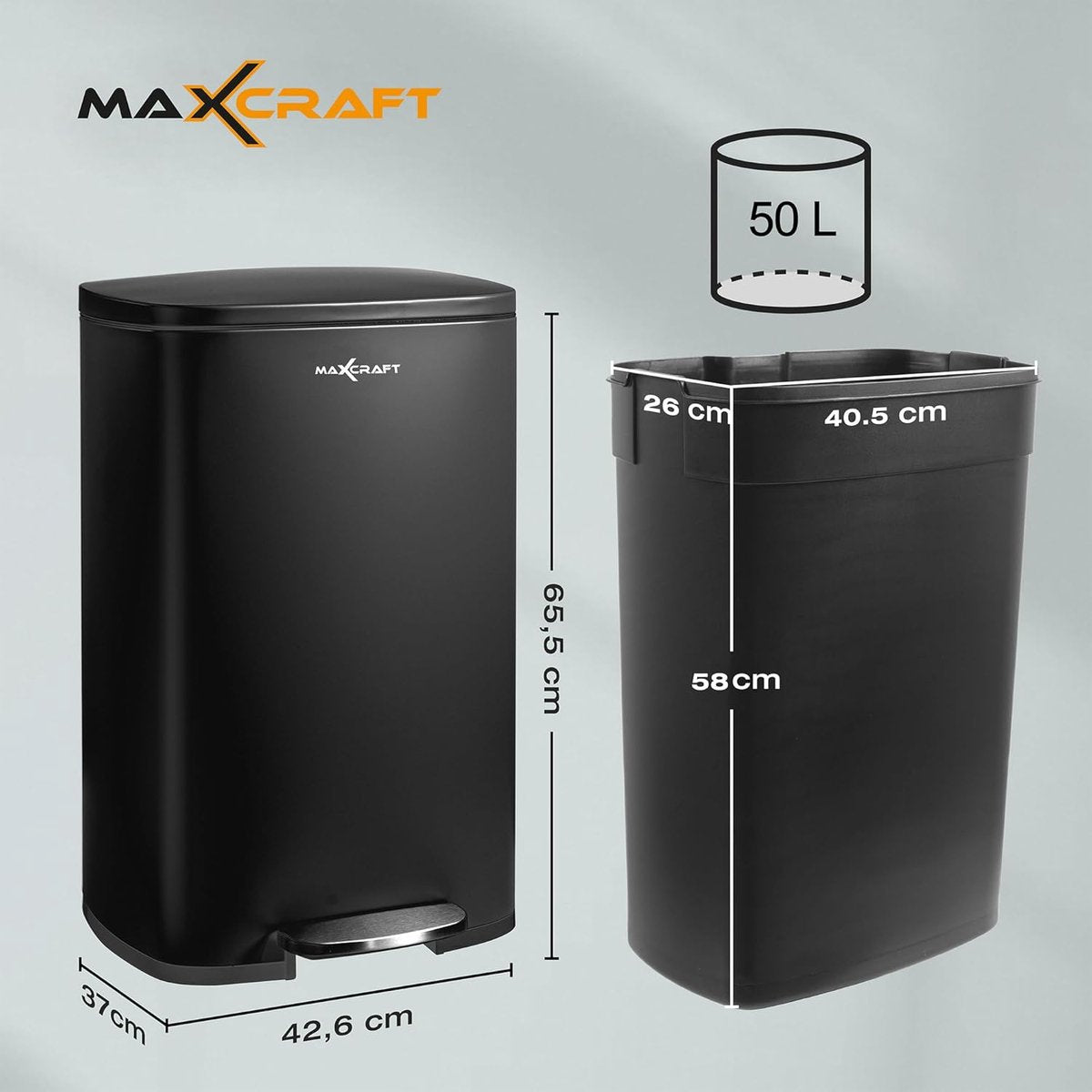 Stalen pedaalemmer met kunststof binnenemmer, zacht sluitend met deksel, voor keuken, badkamer of kantoor, 50 liter in zwart
