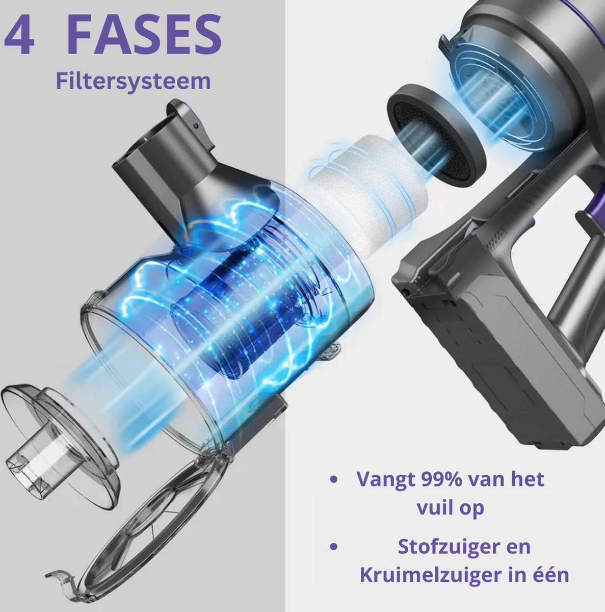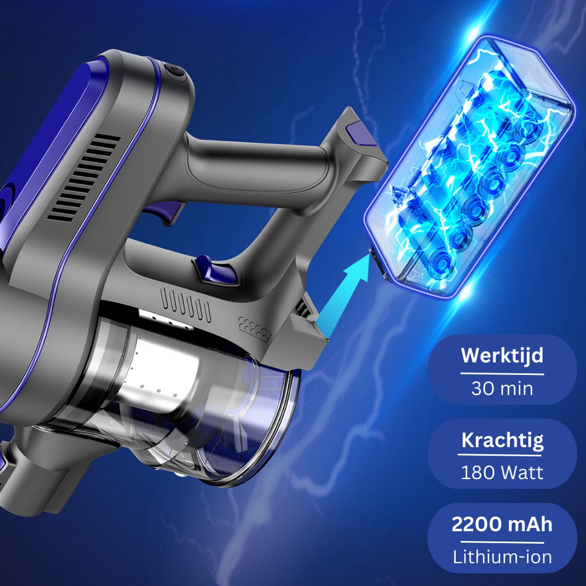 Steelstofzuiger Draadloos - Stofzuiger - Zonder Zak op Accu - 3 Verschillende Opzetstukken - Kruimelzuiger - 180W