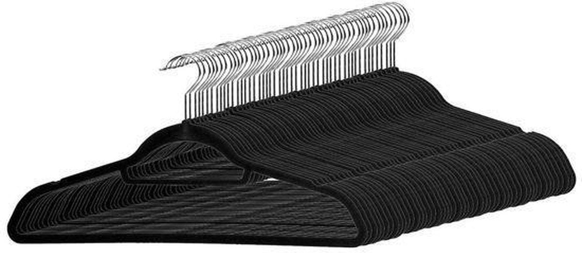 Stevige Kunststof Kleerhangers met Suede Afwerking - 50 Stuks Kledinghangers - Zwart
