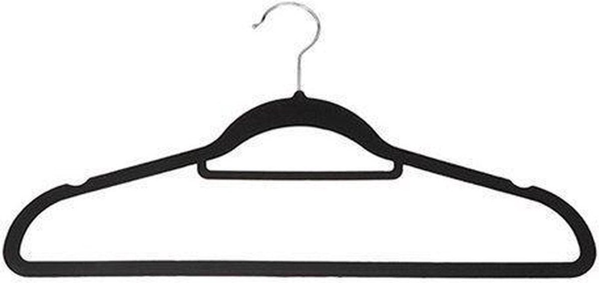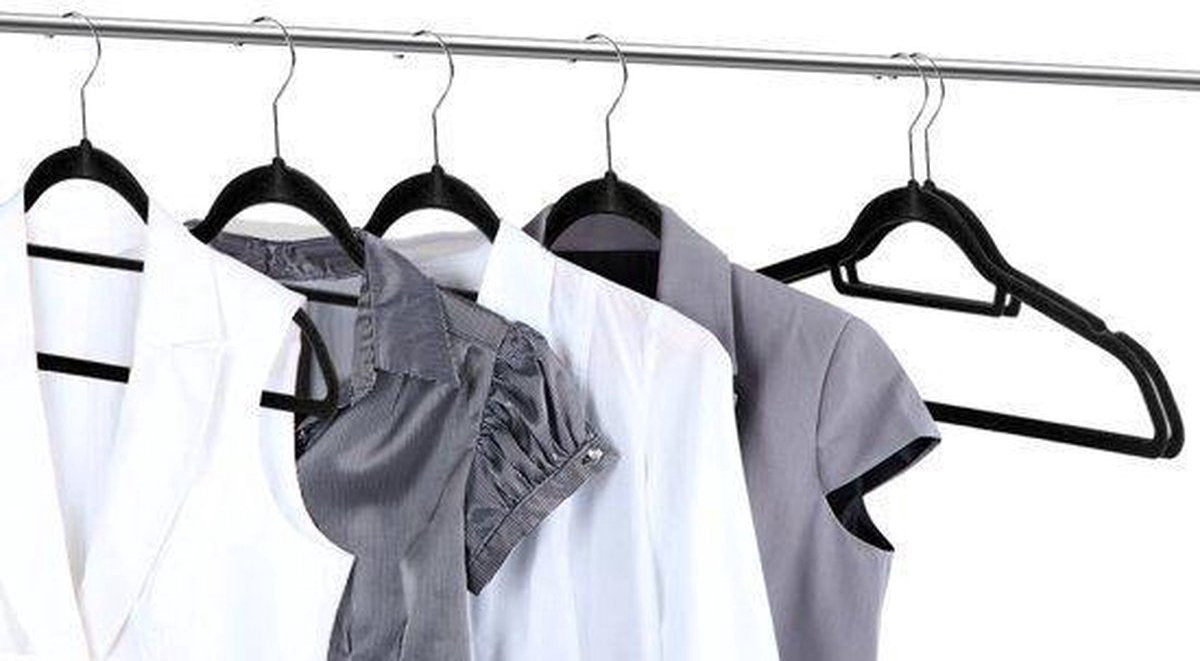 Wil je eindelijk kledinghangers waar je kleding echt op blijft hangen? Stop maar met zoeken, want dit zijn ze. Deze sterke kunststof kledinghangers zijn namelijk bekleed met zwart suede. Hierdoor blijft echt al je kleding op zijn plaats, hoe glad de stof ook is.