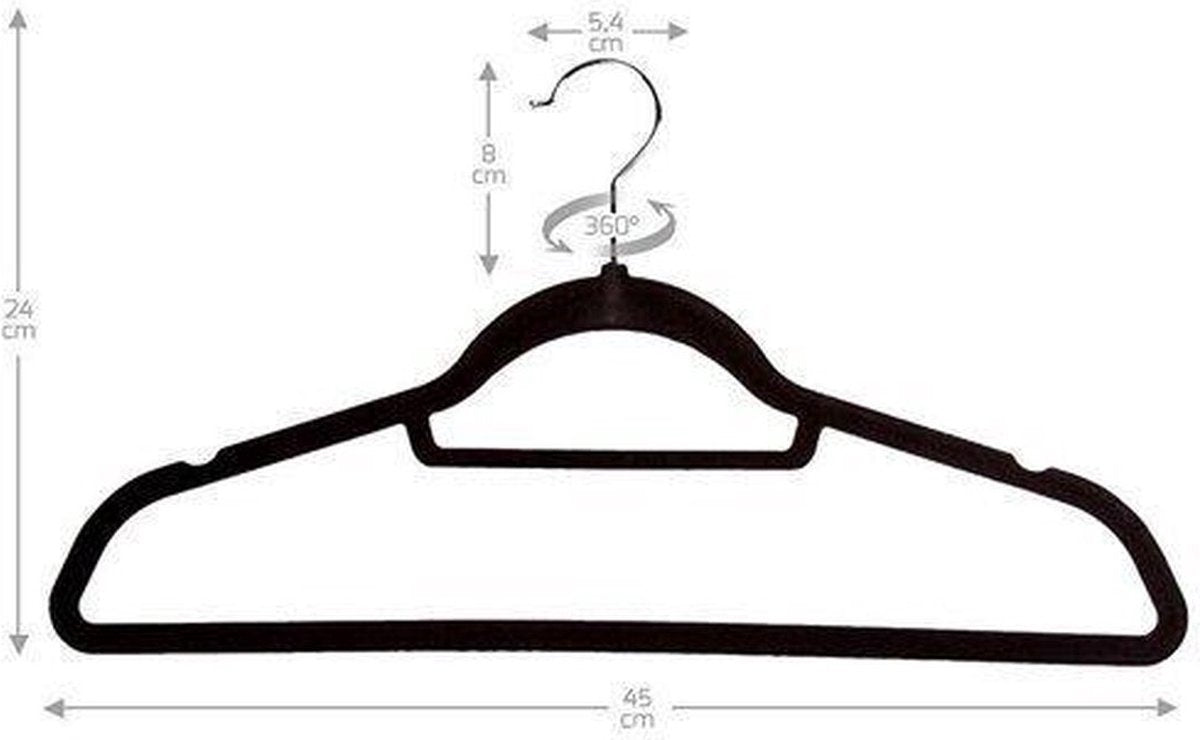 Een extra voordeel van deze hangers is, dat ze lekker slank zijn. Dit in tegenstelling tot bijvoorbeeld luxe en dure houten kledinghangers. Die nemen zelfs zonder kleding al heel veel ruimte in beslag. Dus, vervang nu al je oude hangers door deze zwart suede hangers, je krijgt er maar liefst 50, en je zult je nooit meer ergeren aan kleding die onderin je kast is gevallen.