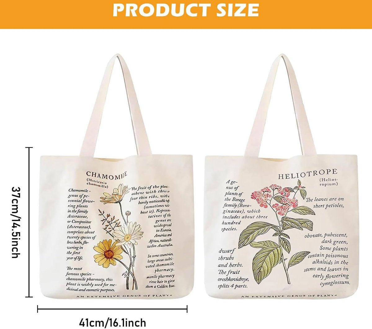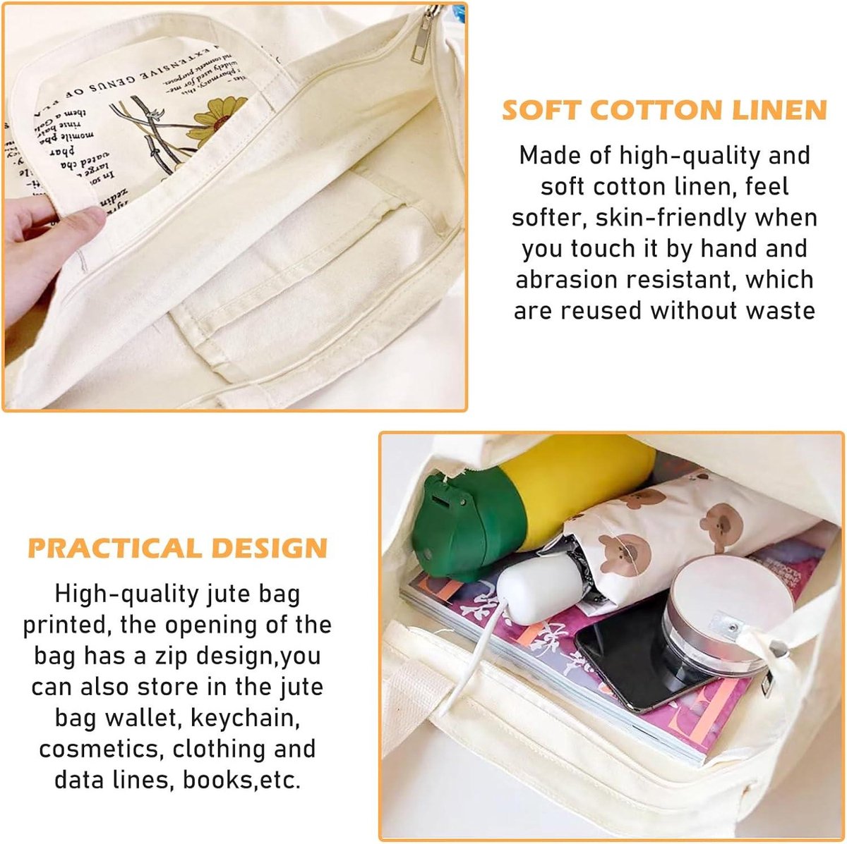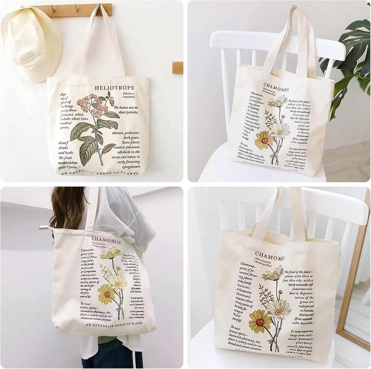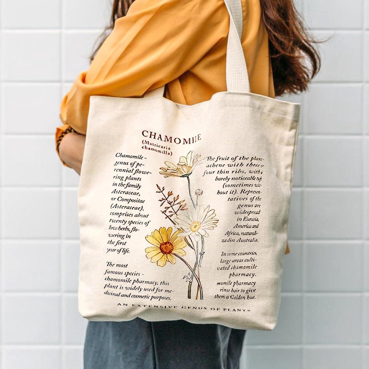 Stoffen tassen met bedrukte kamille - katoenen, jute - boodschappentas voor dames - esthetische canvas tote bag - shopper voor vrije tijd Tote bag met rits