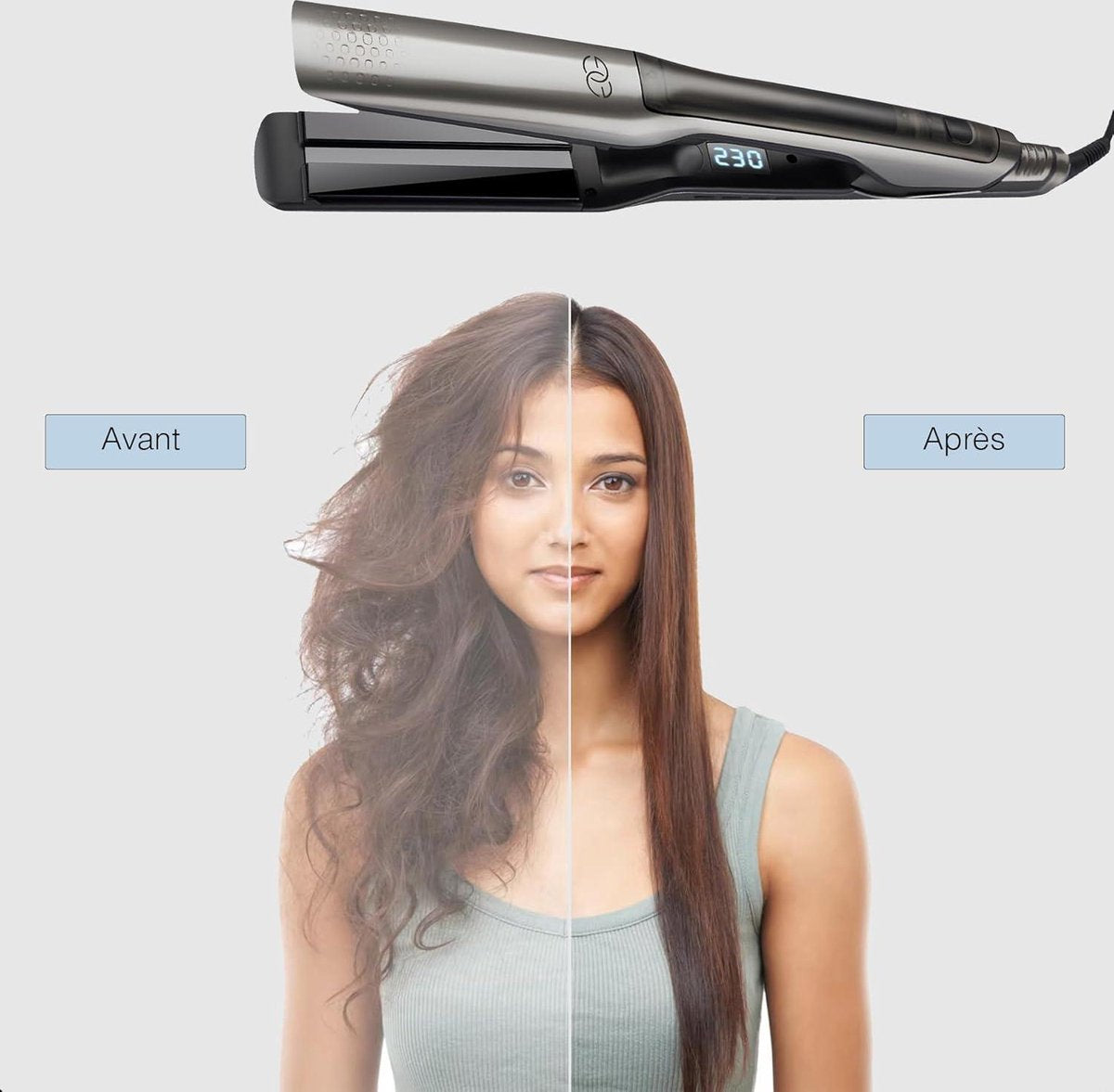 Met onze stijltang kun je eenvoudig het volumineuze effect van een salonblowout creëren, gewoon vanuit huis. Dankzij de stoomtechnologie blijft je haar gehydrateerd en glanzend, zonder pluizigheid. Daarnaast zorgen de keramische platen ervoor dat je haar zijdezacht en steil wordt in slechts één beweging. De negatieve ionen technologie vermindert statisch haar en zorgt voor een perfecte, glanzende finish. De stijltang heeft aanpasbare temperatuurstanden, zodat je de warmte kunt aanpassen aan je haartype en altijd het beste resultaat behaalt zonder schade.