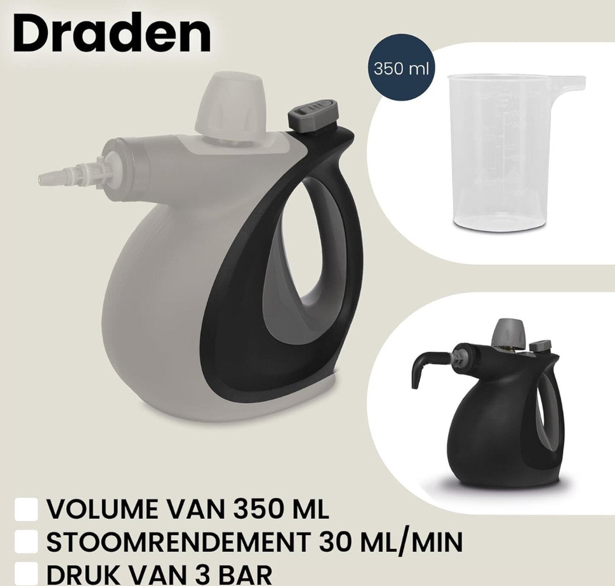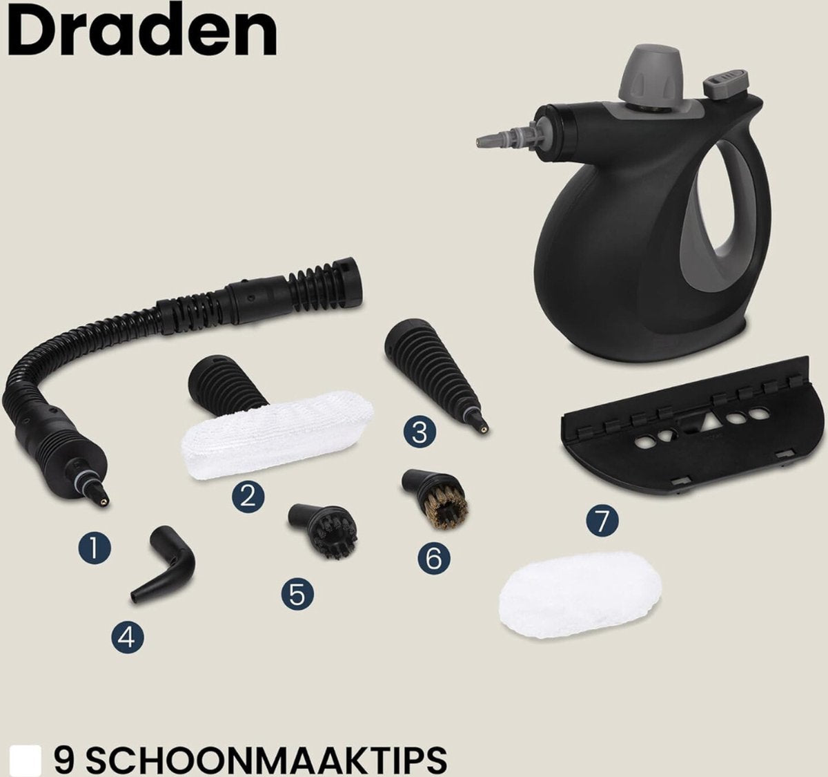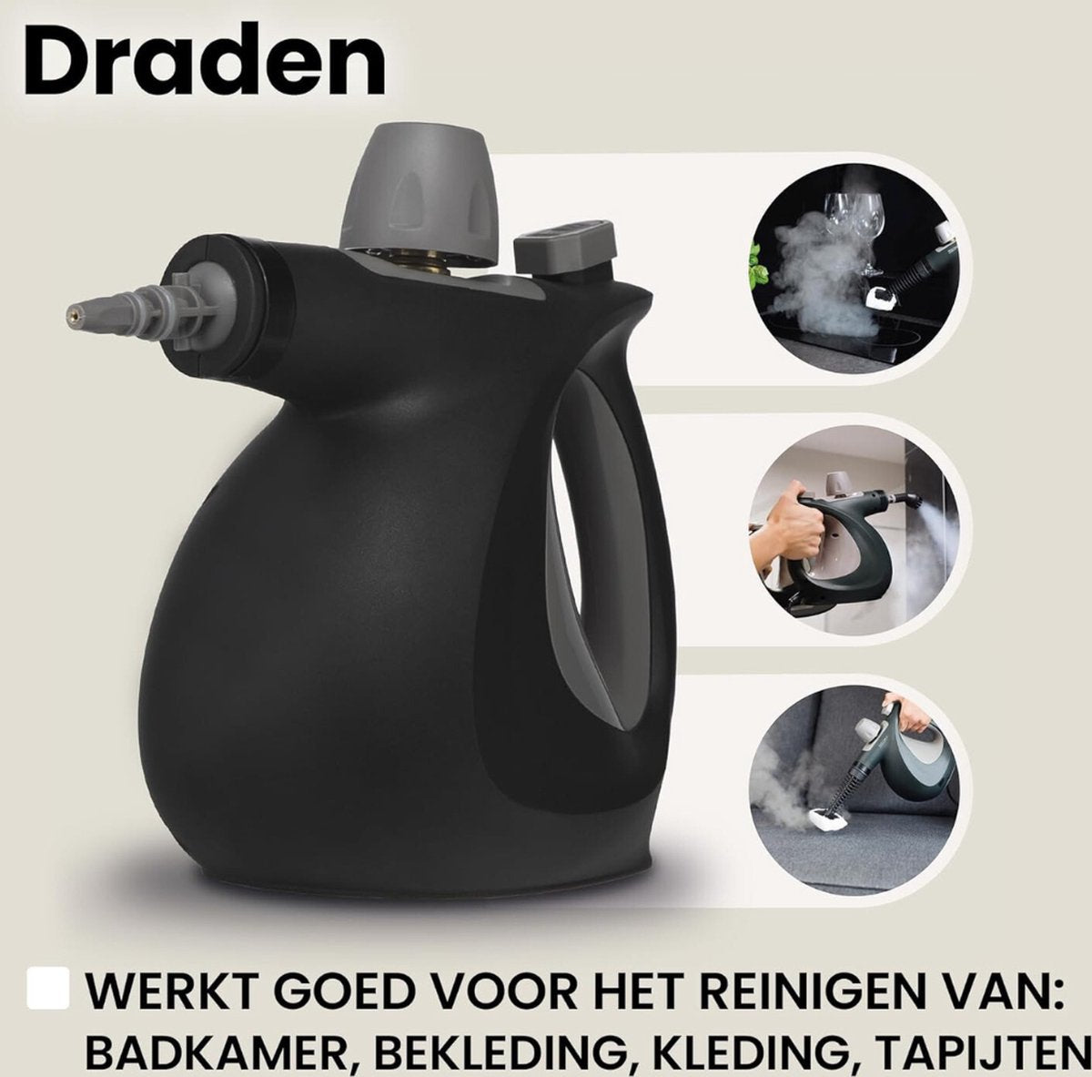 Stoomreiniger - Handstoomreiniger - Veelzijdig inzetbaar - Multifunctioneel - Incl. 9 Accessoires - Zwart