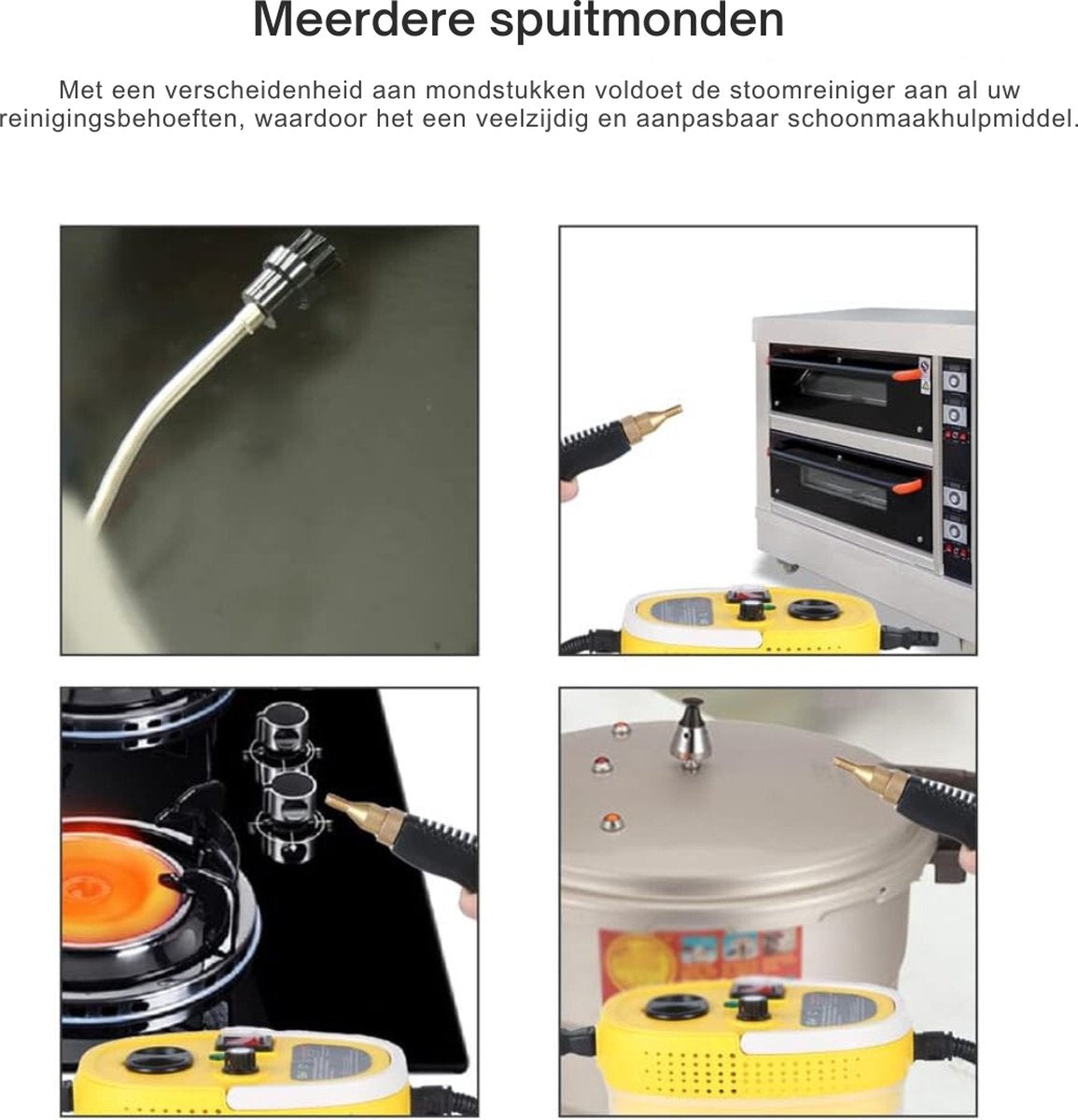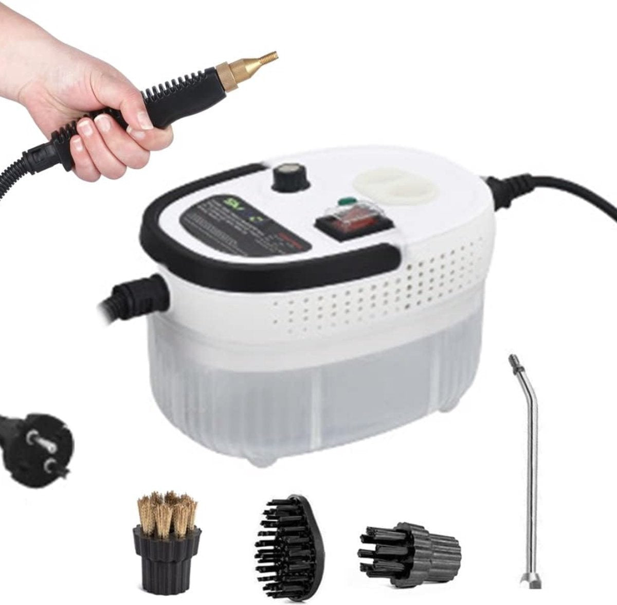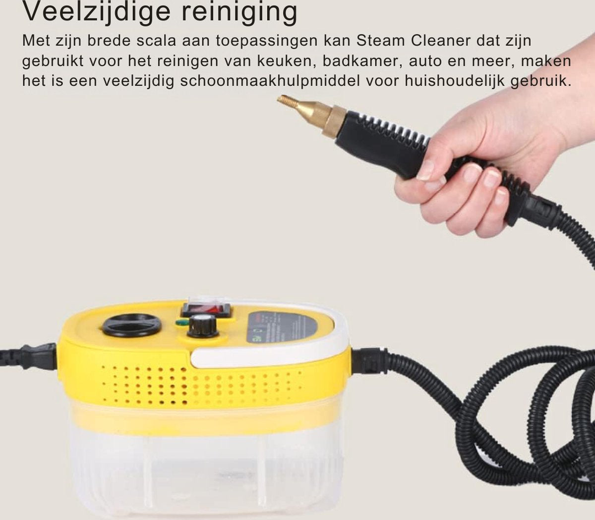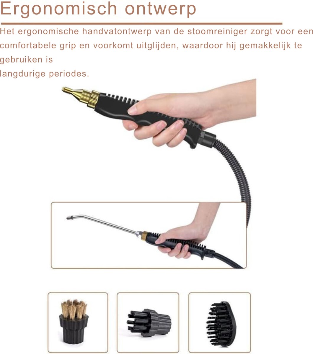 Ontdek de veelzijdigheid en kracht van onze stoomreiniger, ideaal voor grondige en effectieve reiniging in huis. Deze stoomreiniger is uitgerust met een handige watertank en komt met een reeks sproeiers, waardoor je een breed scala aan oppervlakken en toepassingen kunt reinigen. Of je nu hardnekkig vuil wilt verwijderen of dagelijkse schoonmaaktaken wilt vereenvoudigen, deze multifunctionele stoomreiniger biedt de perfecte oplossing.