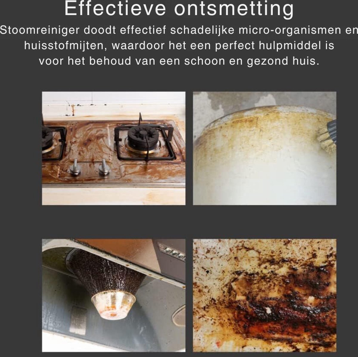• Krachtige Stoomreiniging: De stoomreiniger maakt gebruik van krachtige stoom om vuil, vet en bacteriën effectief te verwijderen zonder het gebruik van chemicaliën. De stoom dringt diep door in oppervlakken en biedt een grondige reiniging die zowel effectief als milieuvriendelijk is.