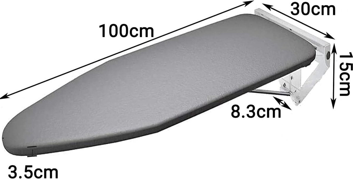 Strijkplank, wandmontage, inklapbare strijkplank, draaibaar 90 graden, wandstrijkplank, inklapbaar, met katoenen overtrek, ruimtebesparend, hittebestendig, 1070 mm x 300 mm x 35 mm