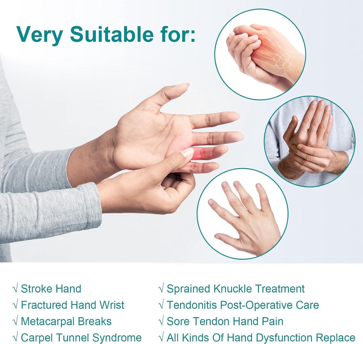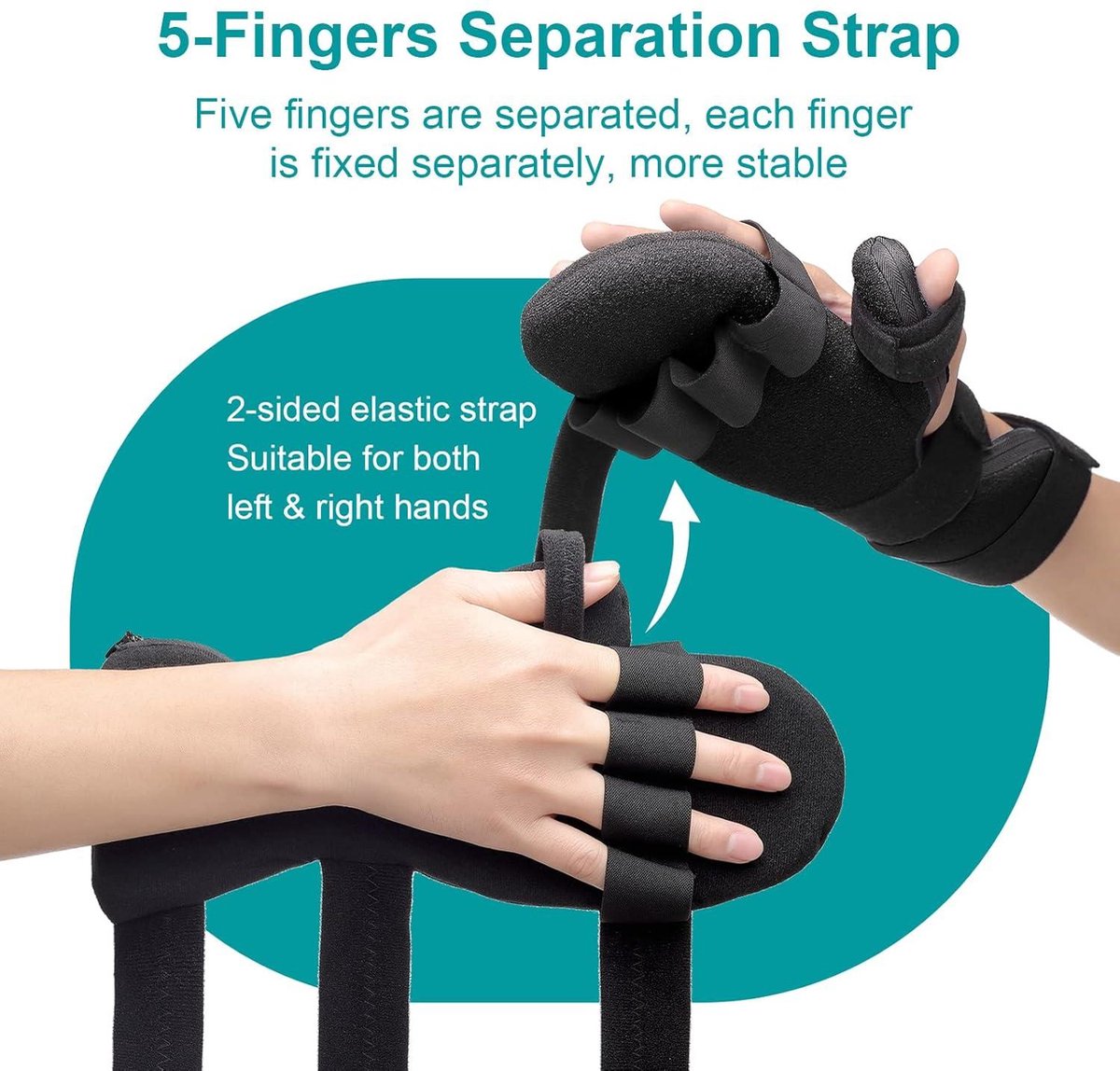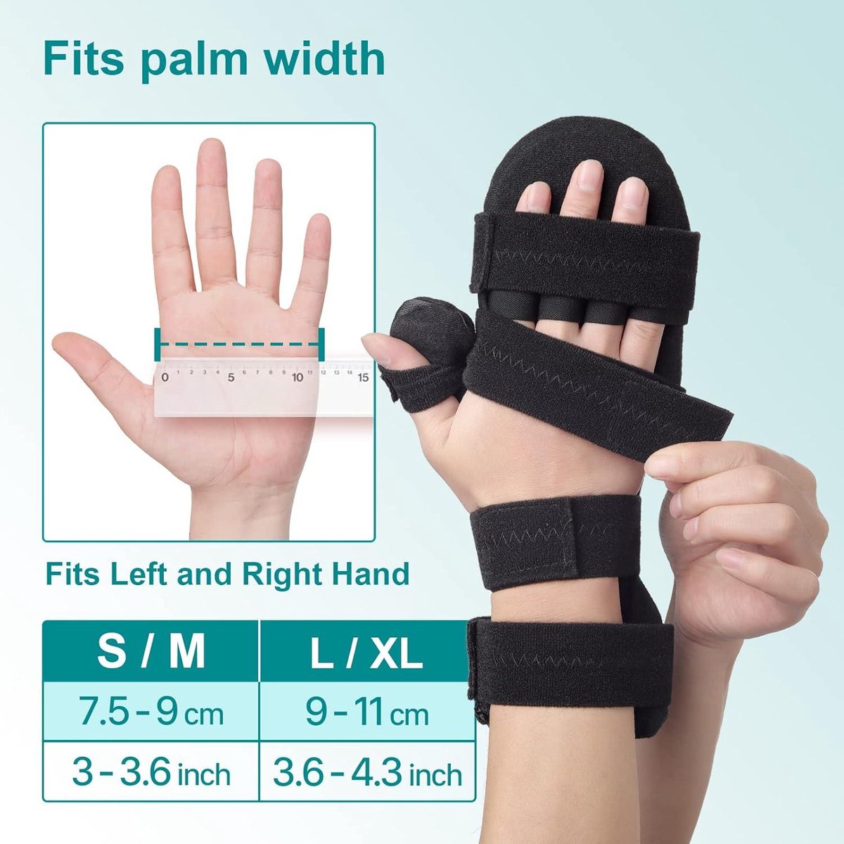 Stroke Rest Hand Splint Night Support Brace Finger Stabilizer Wrist Wrap for Muscle Atrophy Rehabilitation Arthritis Mild Cramps Tendonitis Carpal Tunnel Pain Fit Left & Right
