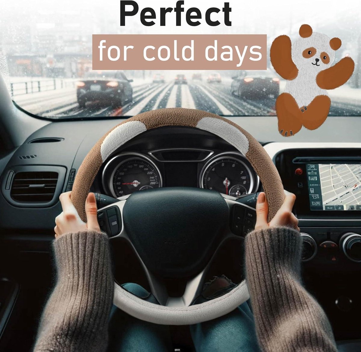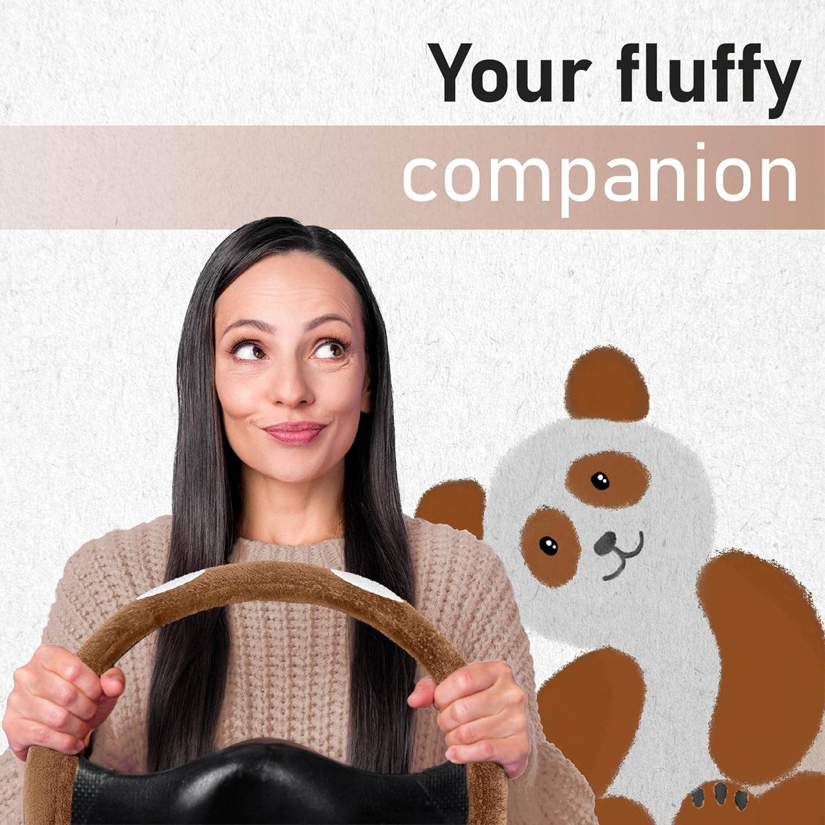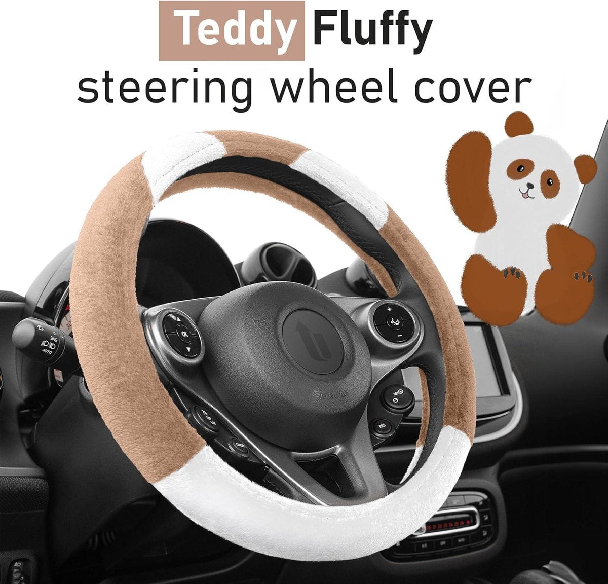 Stuurhoes Pluche Bruin Wit - Teddy Accessoires Interieur voor Vrouwen - Universeel 37-39 cm / 145-15 Inch stuurhoes panter
