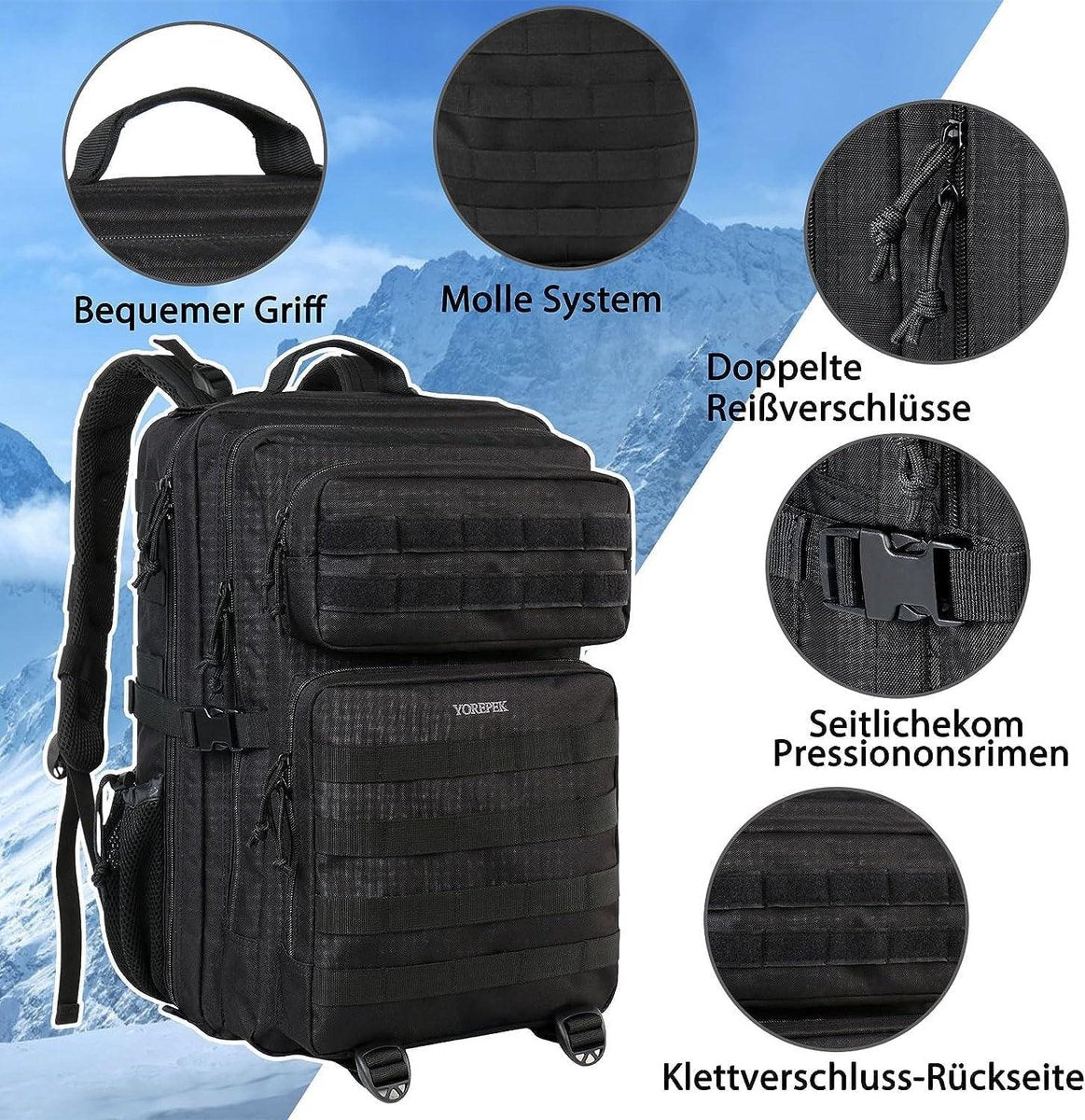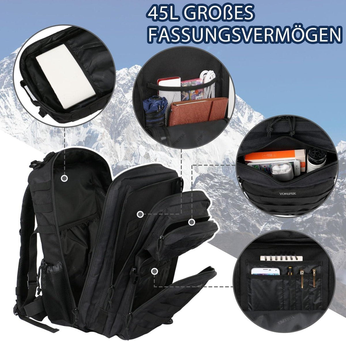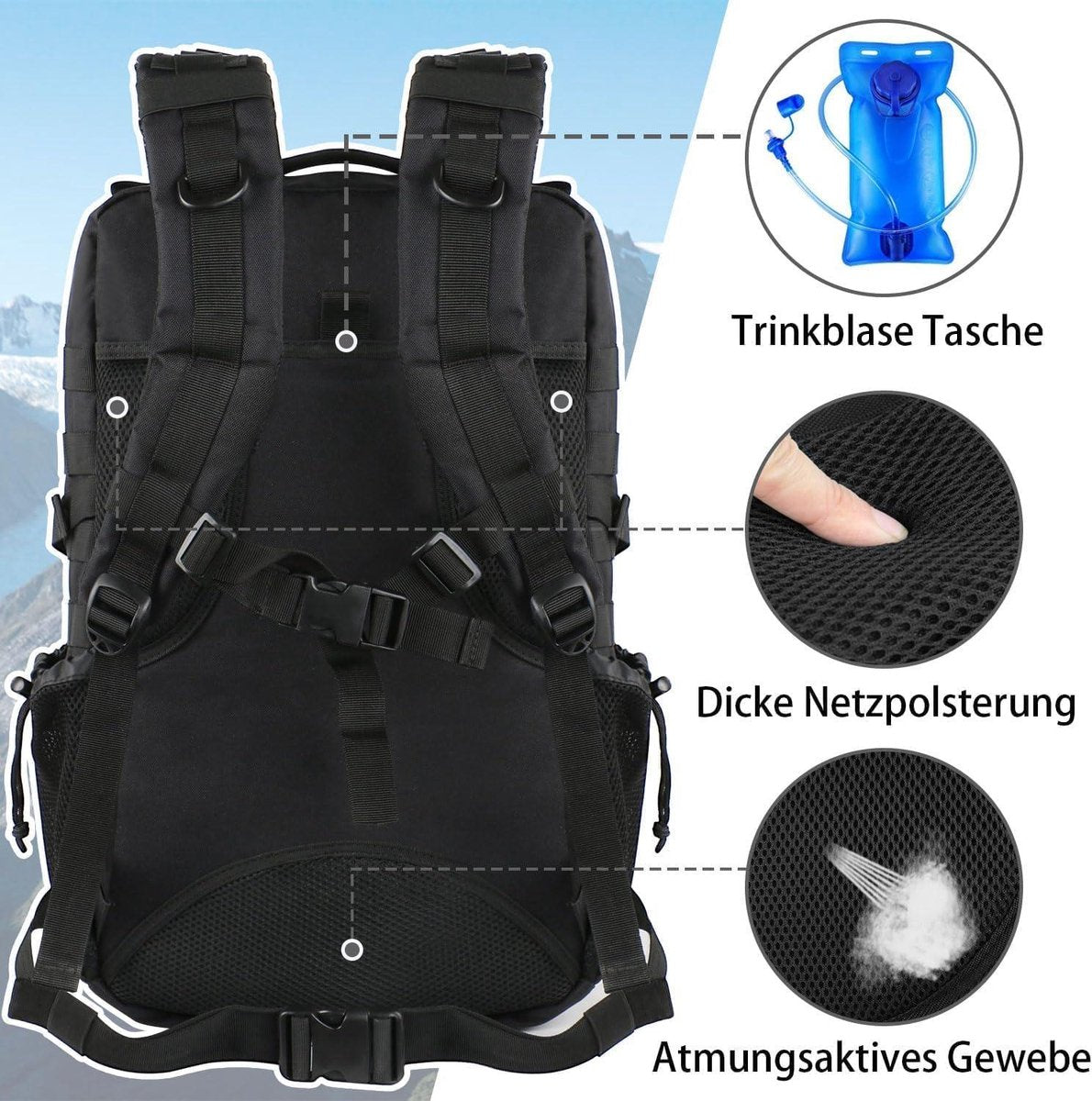 Tactische militaire rugzak 45 l grote inhoud Molle waterdicht survivalrugzak outdoorsport heren dames wandelen reizen fissen kamperen klimmen zwart Rugzak