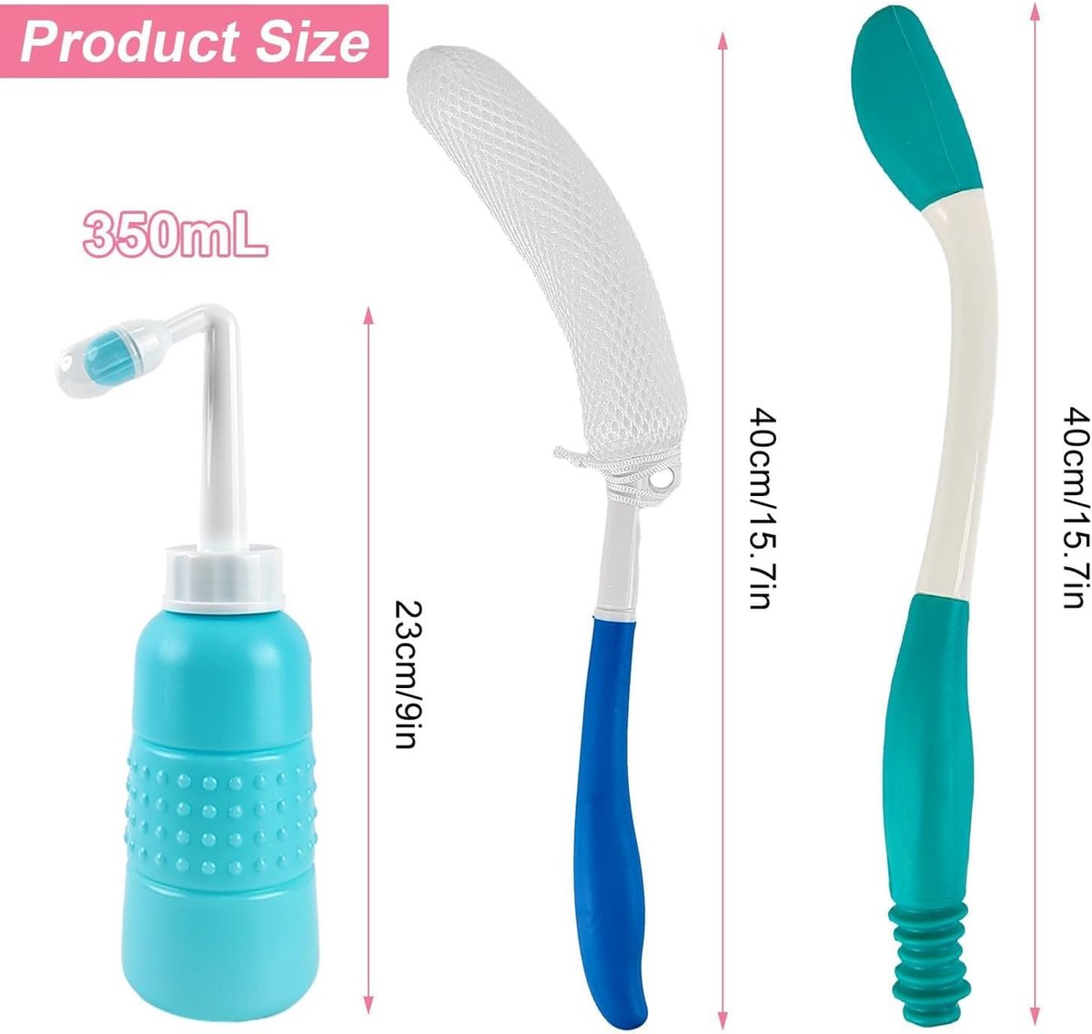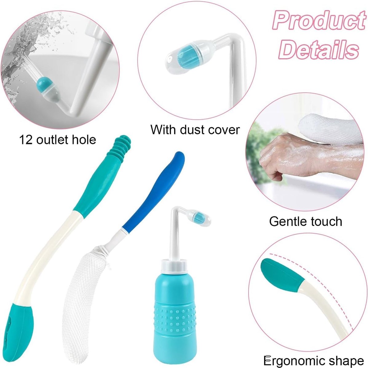 - Set van 4 voordelige artikelen: de toiletset bevat een gebogen borstel, een draagbaar bidet, toilethulpmiddelen en een opbergtas. In vergelijking met de individuele aankoop van deze items, wordt deze set aangeboden tegen een meer betaalbare prijs.