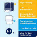 Gebruik de Tork Matic® Elevation Design H1 papieren handdoekdispenser van Tork® in drukbezochte ruimtes zoals wasruimtes of entreehallen om in een handomdraai te zorgen voor gezondheidsbevorderende reinheid en hygiëne.