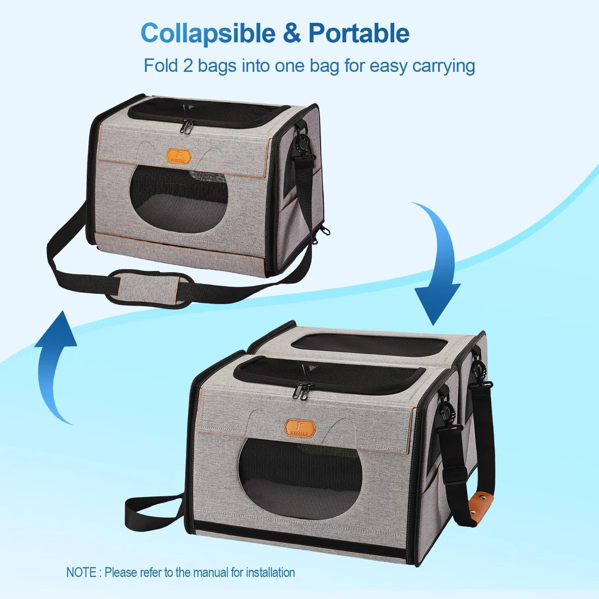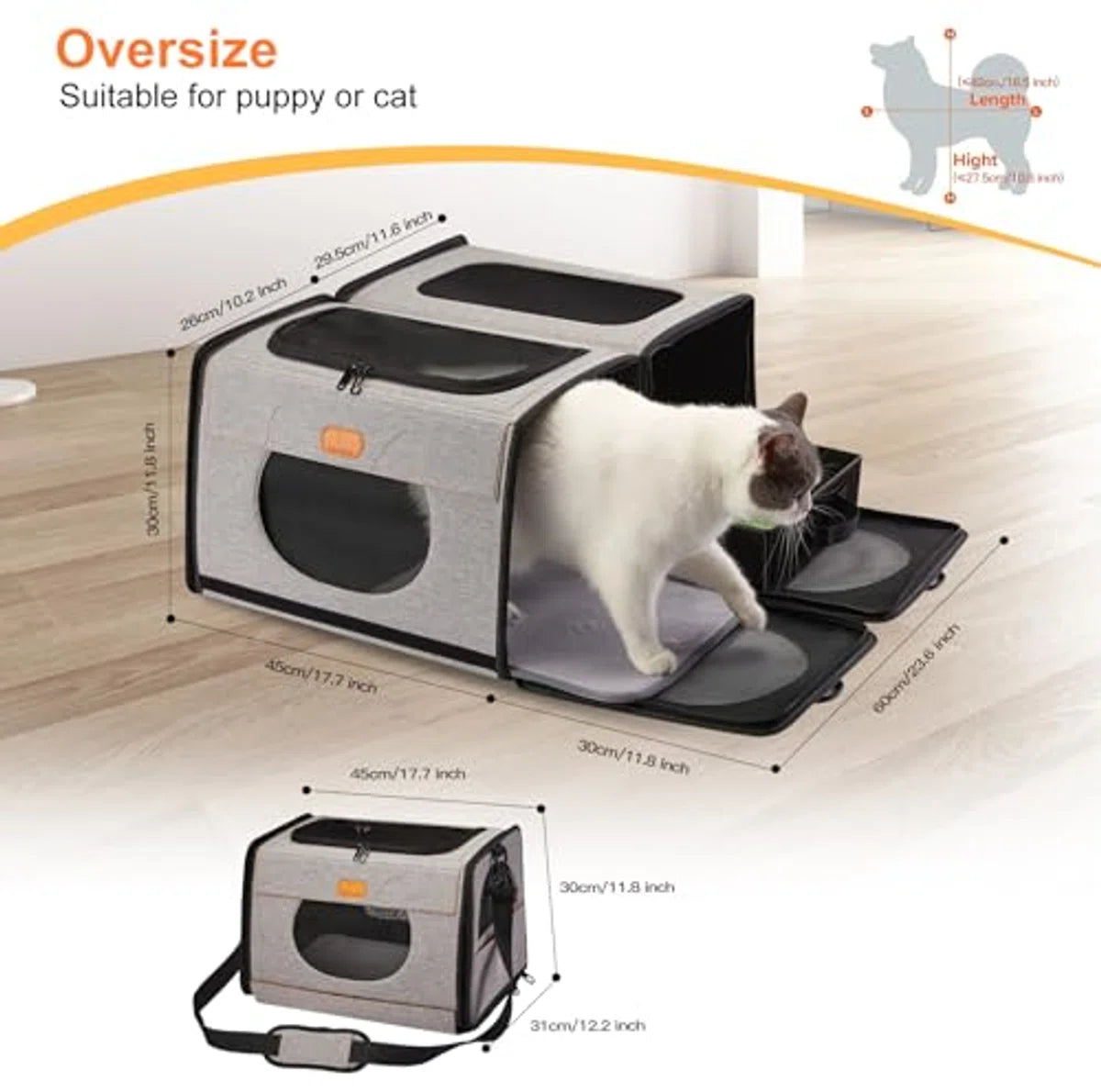 transportbox groot, transportbox kattenreis transport voor katten, opvouwbare kattentransportboxen, kattenmand Eén voor kattenbak en zachte kattenkooi 2-in-1 dubbele dierendraagtas