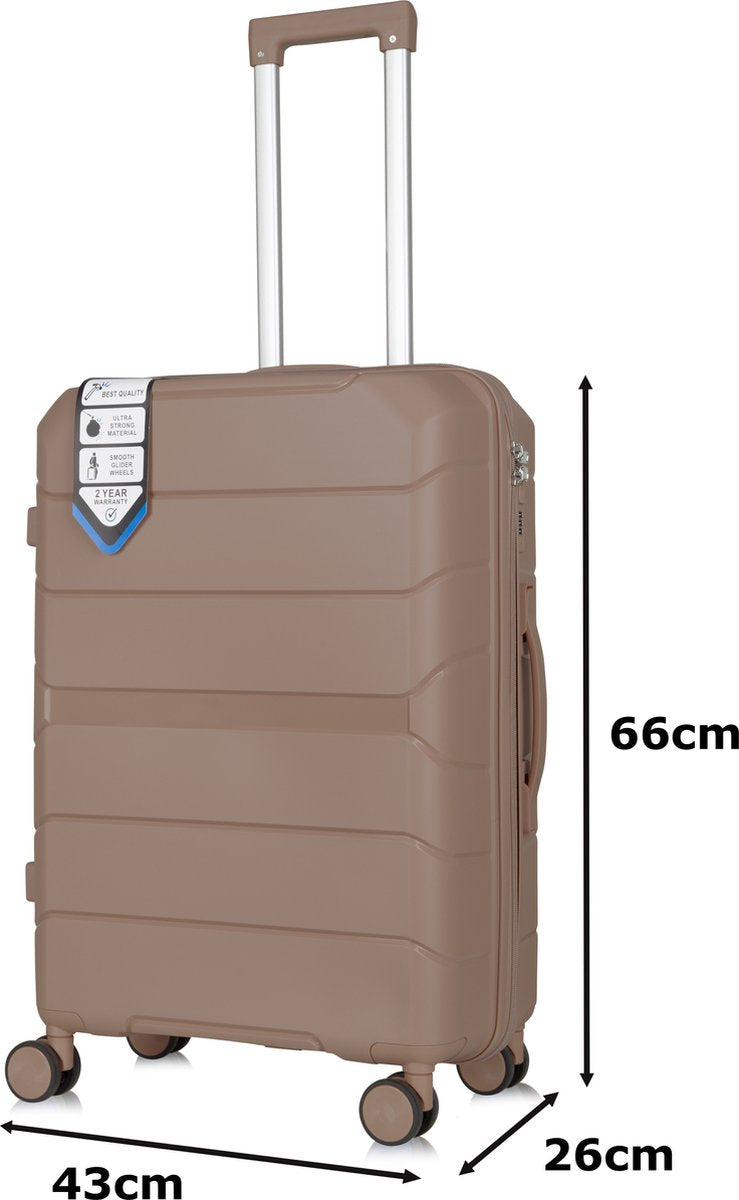 Traveller Set 2xM Reiskoffers 24' - 65L - Lichtgewicht Harde Koffers - Licht Bruin - Met Ingebouwde TSA Slot - Voor Vakanties en Weekendtrips