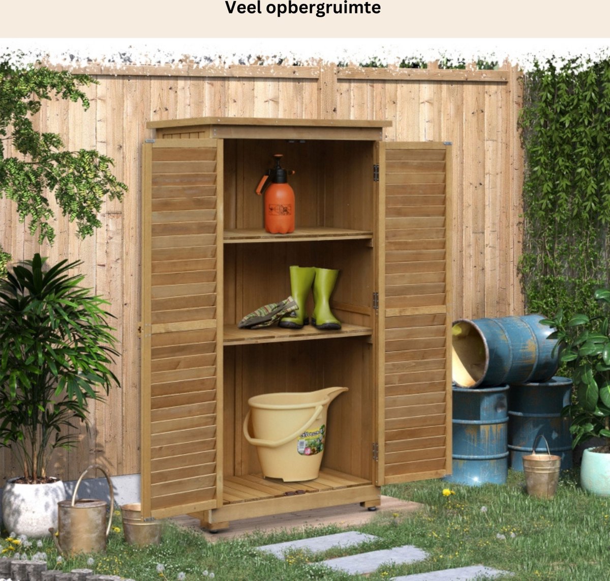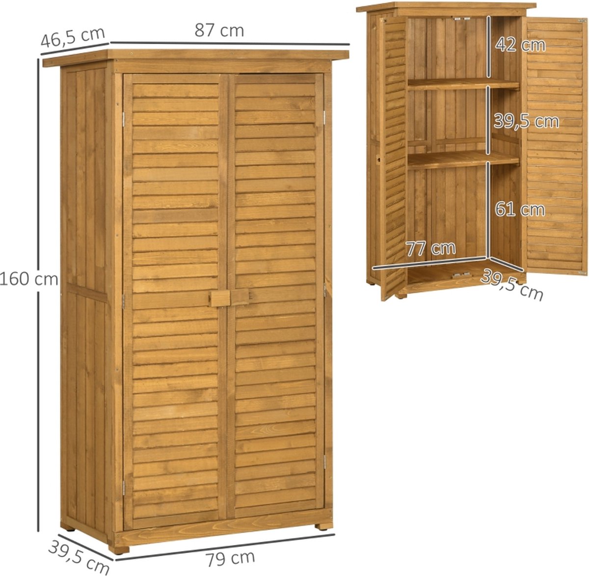 Op zoek naar een praktische opbergoplossing voor jouw tuin? Deze tuinkast is precies wat je nodig hebt! Gemaakt van massief dennenhout, met 3 planken en 2 louvredeuren voor voldoende ventilatie. Met afmetingen van 87 x 46,5 x 160 cm biedt dit tuinhuis voldoende ruimte voor al jouw tuingereedschap. Eenvoudig te monteren met gedetailleerde instructies inbegrepen. Verbeter je buitenruimte vandaag nog met deze fijne tuinschuur.