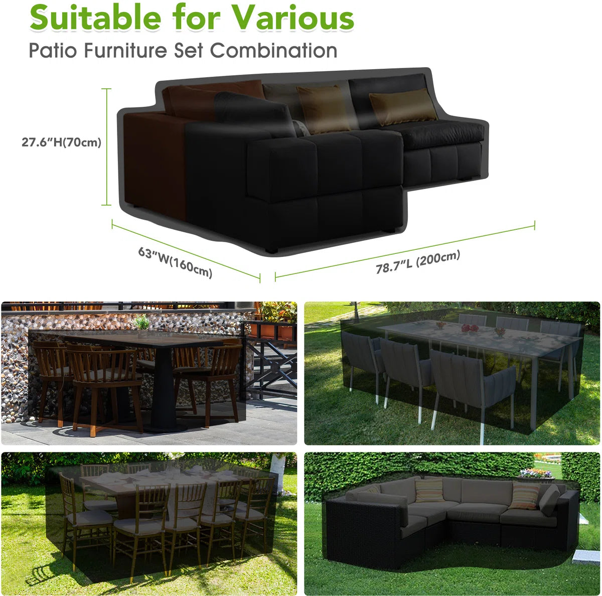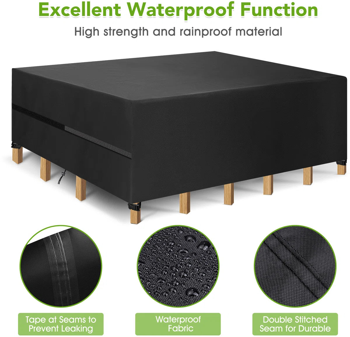 - 【Waterdicht en winddicht】Aan de onderkant van de meubelhoes bevindt zich een sluittouw en vier gespen. Trek het touw strak en maak de 4 gespen vast. Zelfs onder sterke wind en barre omstandigheden kunnen uw meubels goed worden beschermd.
