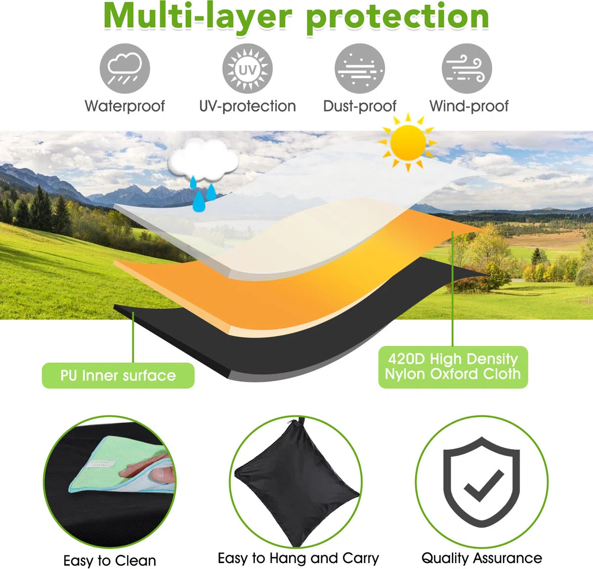 Gemaakt van 420D nylon oxford-stof met hoge dichtheid, beschermt het uw tuinmeubilair tegen water, stof, sneeuw en wind, waardoor het droog en duurzamer blijft.