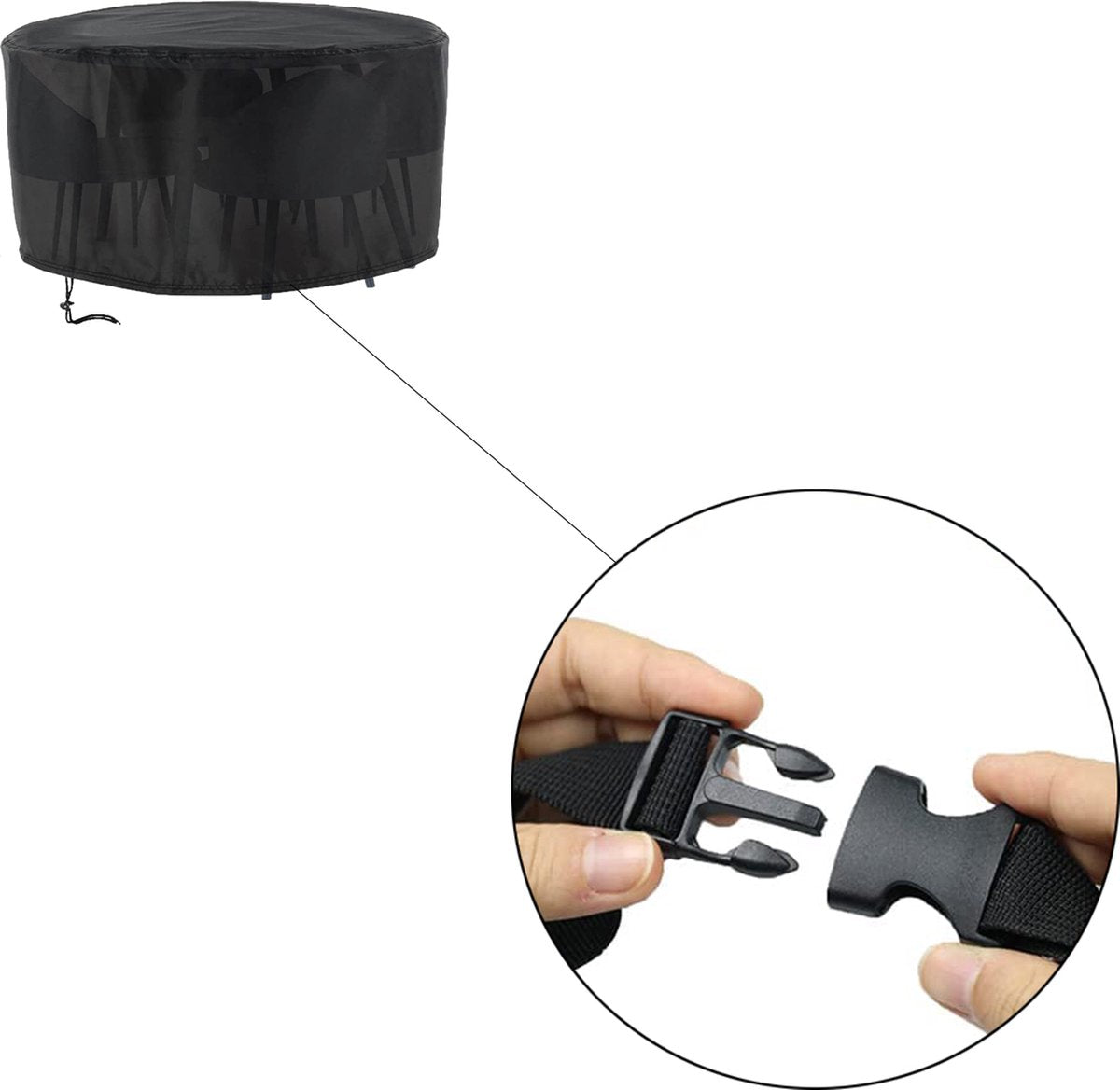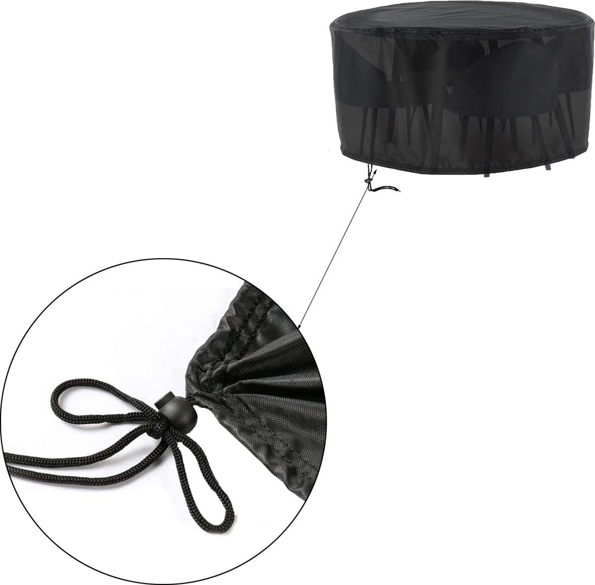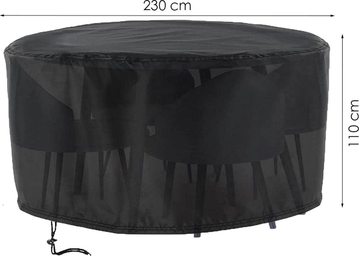 Tuinmeubelhoes Rond - 230 cm x 110 cm - Zwart - Beschermhoes voor je Tuinset - Tuinmeubelbeschermhoes