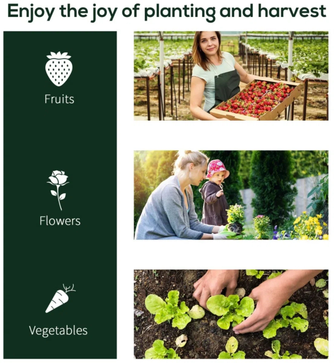 - Optimale hoogte voor bijna alle gangbare soorten groenten en fruit