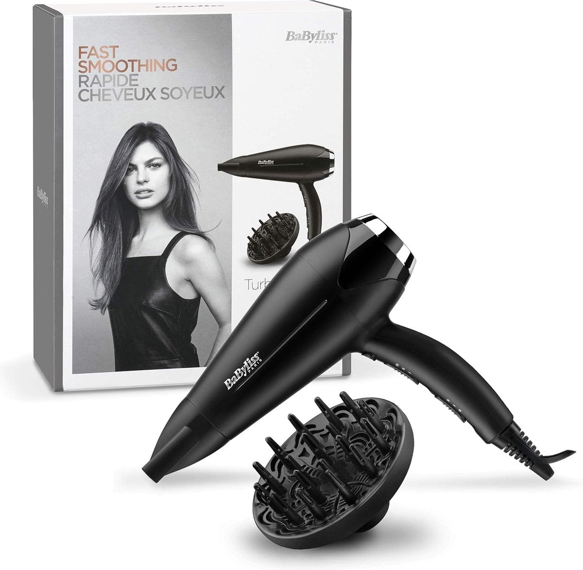 - Accessoires: een smalle blaasmond voor gladde resultaten en een grote diffuser voor natuurlijke krullen en volume