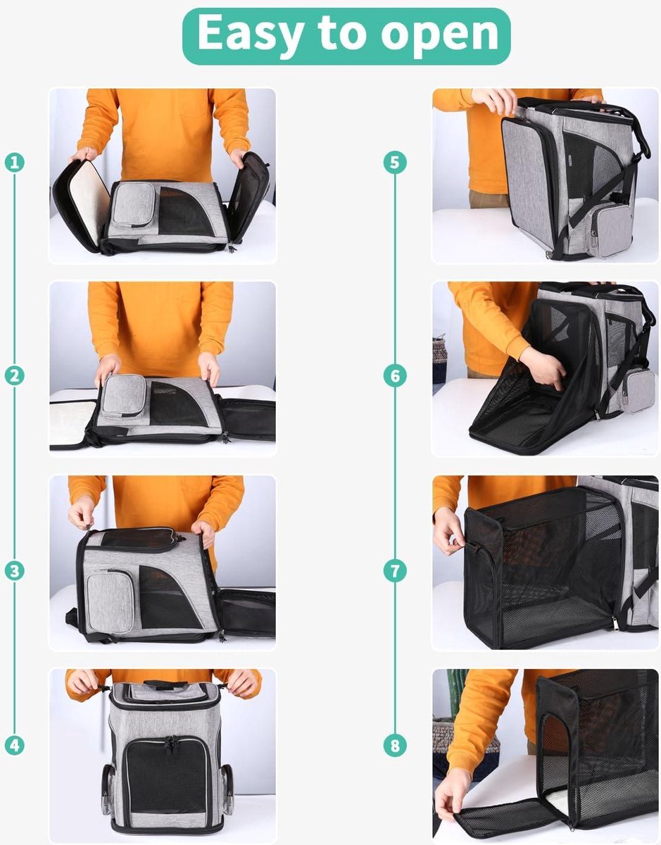 Deze uitbreidbare huisdierrugzak biedt je huisdier meer bewegingsvrijheid en comfort, terwijl het angsten vermindert. Het is ideaal voor op reis, wandelingen en uitstapjes, waardoor je huisdier altijd dicht bij je kan zijn.