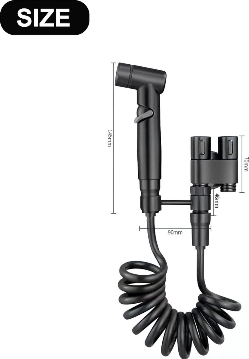 UK draagbare douche bidet - 2m chroom slang - dubbele regelklep - moslim douche sproeier - zwarte versie