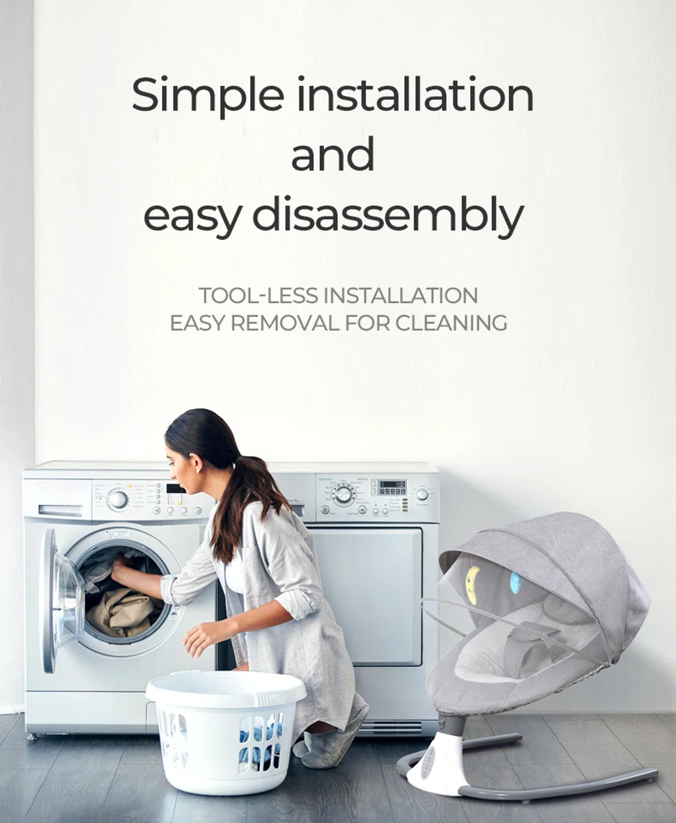 Met vier magische wiegbewegingen en vier ontspannende posities, creëert deze wipstoel de ideale slaapomgeving. De zachte bekleding zorgt voor ongeëvenaard comfort, terwijl ingebouwde speakers je kleintje laten genieten van heerlijke muziek. Met eenvoudige Bluetooth-connectiviteit kun je moeiteloos je favoriete slaapliedjes afspelen vanaf je smartphone of tablet.